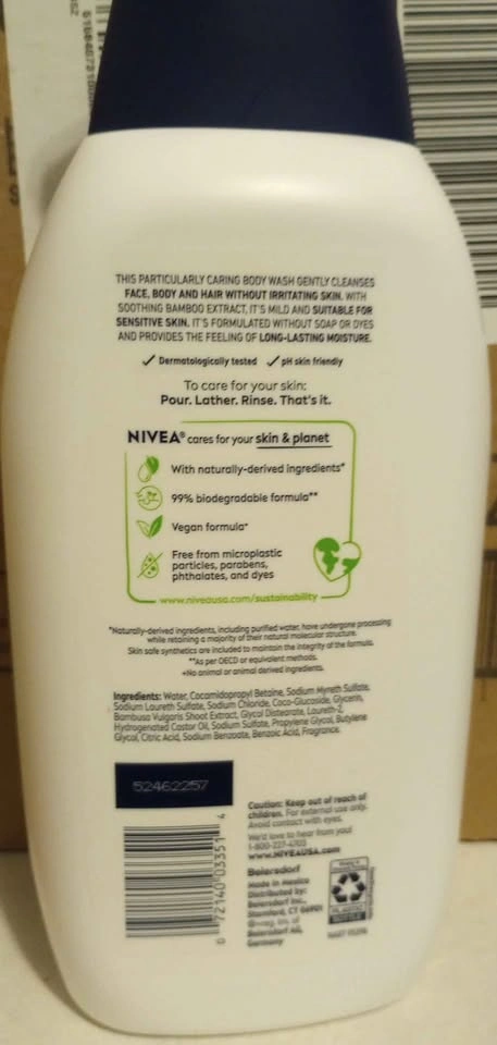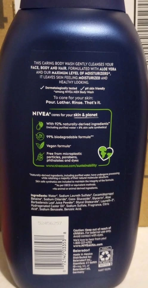 996Selling a set of 2 Nivea Men Body Wash with Aloe Vera. Sz. 16.9 FL OZ (500 mL) Types: Sensitive Maximum Hydration - Plant-derived ingredients - Micro plastic Free - Paraben and Phthalates Free Only available for pickup in DUMBO