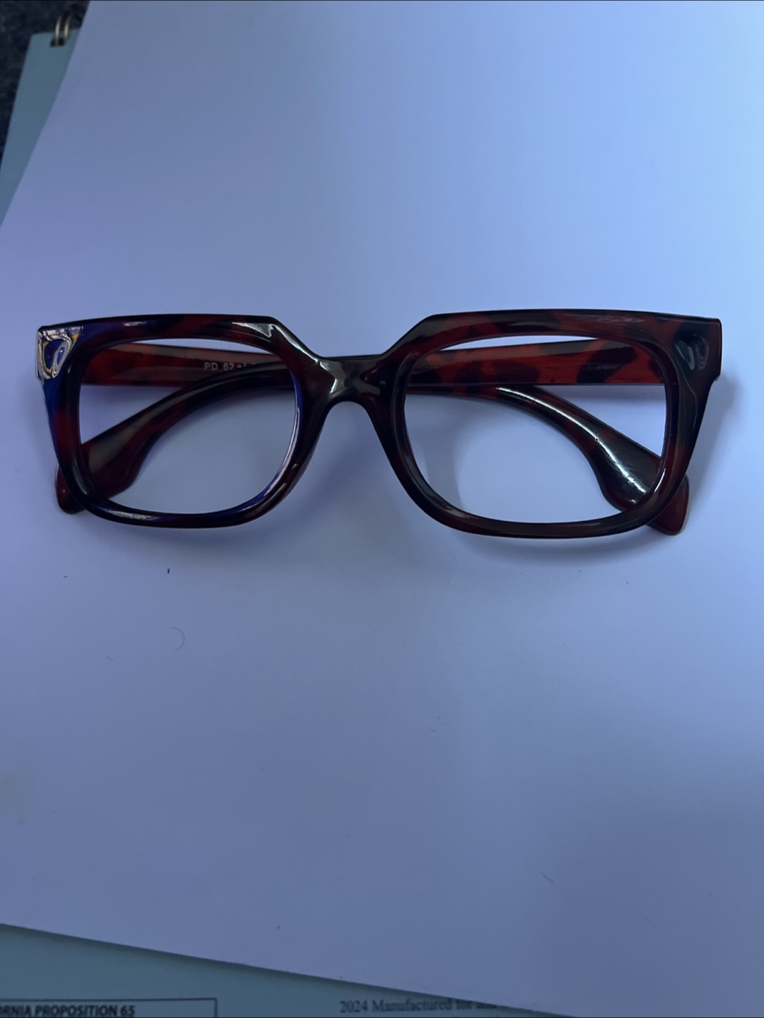 Selling a pair of fashionable glasses with a unique brown pattern. They appear to be in great condition and ready for a new owner!