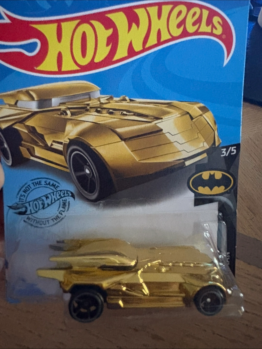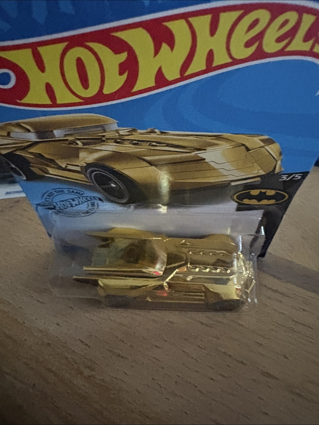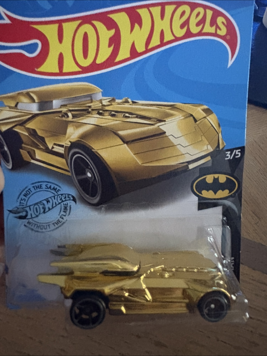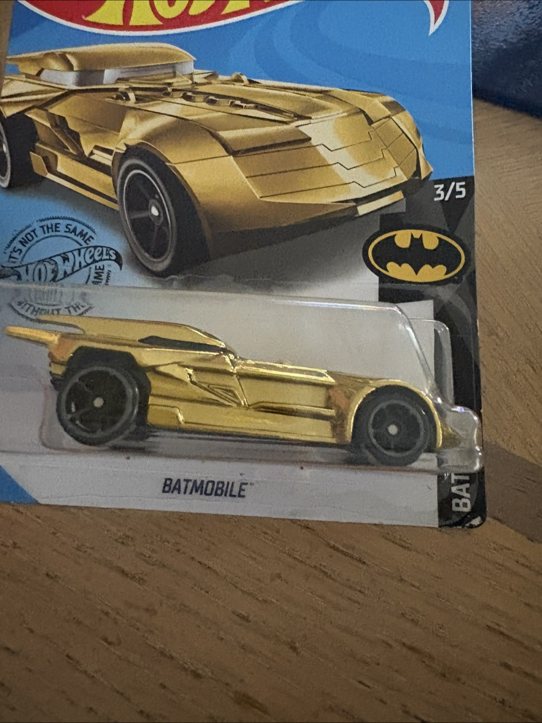 Selling a Hot Wheels Batmobile, still in its original packaging! This one's a cool gold colour, perfect for any collector or Batman fan