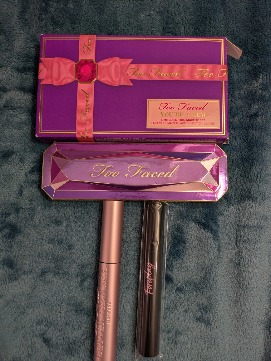 Selling a brand new Too Faced Volumizing Makeup Set! This limited edition collection features a dazzling eyeshadow palette, shimmer, and iconic Better Than Sex mascara.