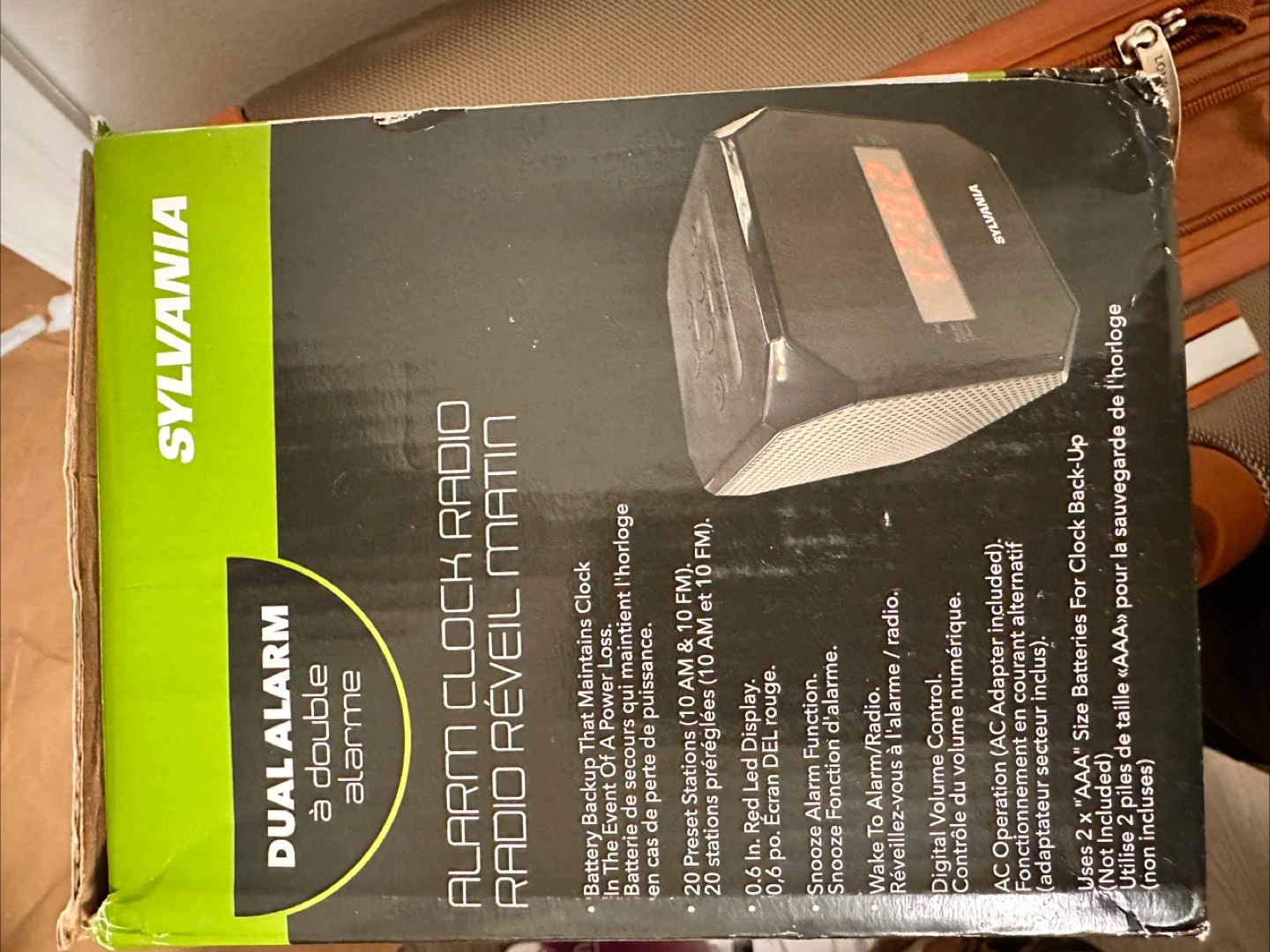 Selling a Sylvania SCR420H clock radio with dual alarm! It's in great condition and comes in its original box. This clock radio has a battery backup that maintains the clock in the event of a power outage. It also features 20 preset stations (10 AM & 10 FM), a 0.6 in red LED display, and snooze function. Wake up to alarm or radio and control the volume digitally. AC operation (AC adapter included).