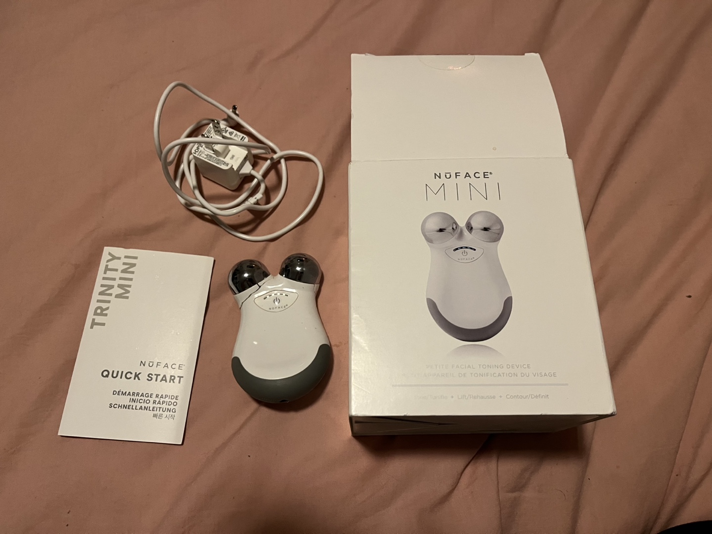 Selling a NuFACE Mini facial toning device. It comes with the box, charger, and quick start guide. There is a crack on the device, please see the photos for details. Still works!
