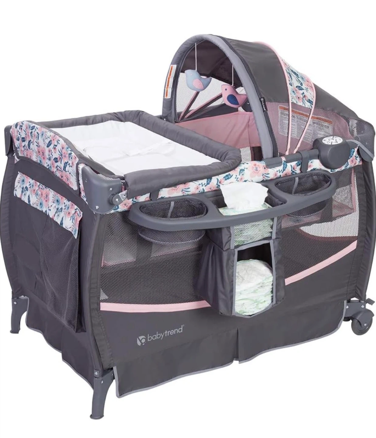 I'm selling a Baby Trend playard in excellent condition! It comes with a changing table, a canopy, and a storage compartment for diapers and wipes. It's perfect for travel or for use at home. The playard is easy to set up and take down, and it folds up compactly for storage. It also comes with a carrying bag.