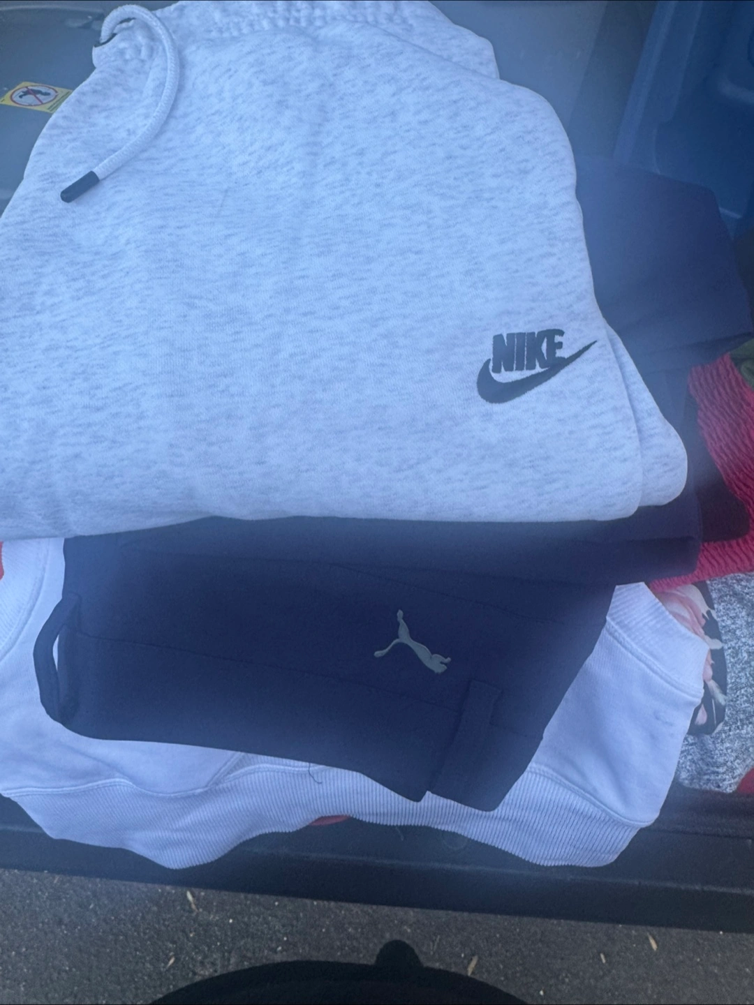 Selling a mixed lot of clothing items! Includes brands like Nike, Puma, Champion, and Adidas. Great for anyone looking for a variety of styles and brands in one go. Please take a look at the photos to see the different items included