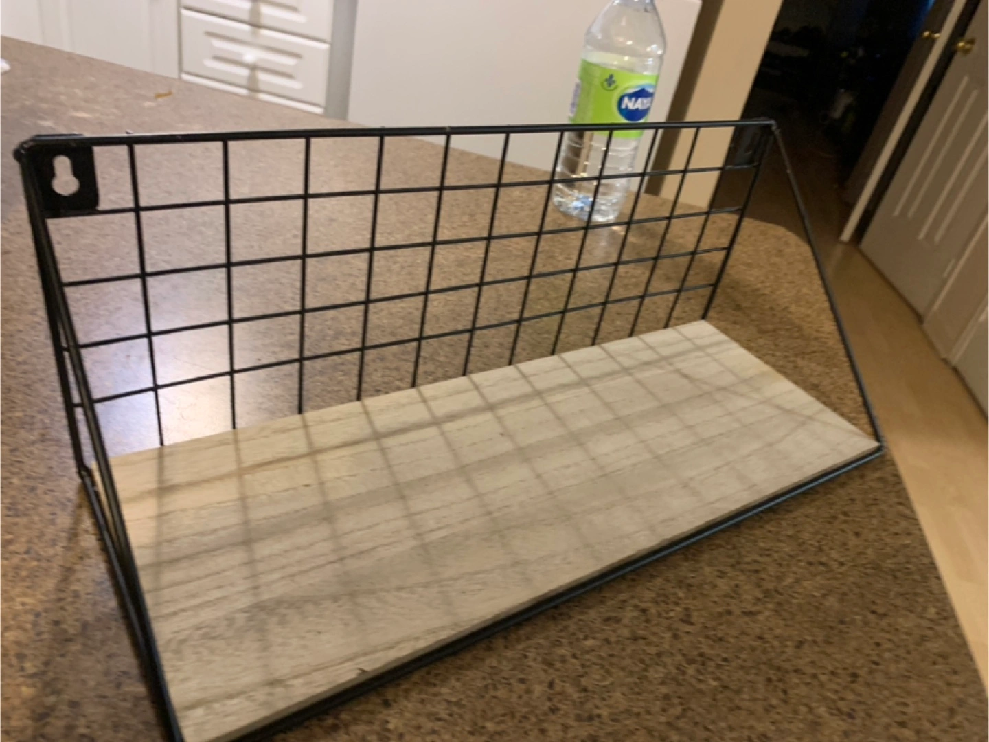 Here's a cute wall shelf with a black wire frame and light wood-look base. It's in great shape and ready to add some storage or display space to your home