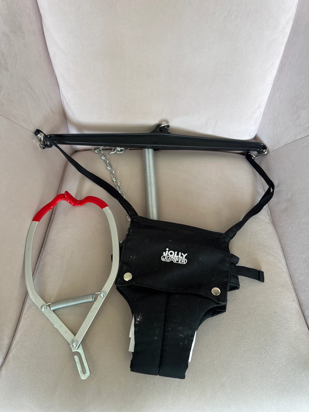 Selling a Jolly Jumper baby exerciser! It's in good condition and ready for a new little one to enjoy bouncing around. It attaches easily to door frames and provides a safe and fun way for babies to develop their motor skills.