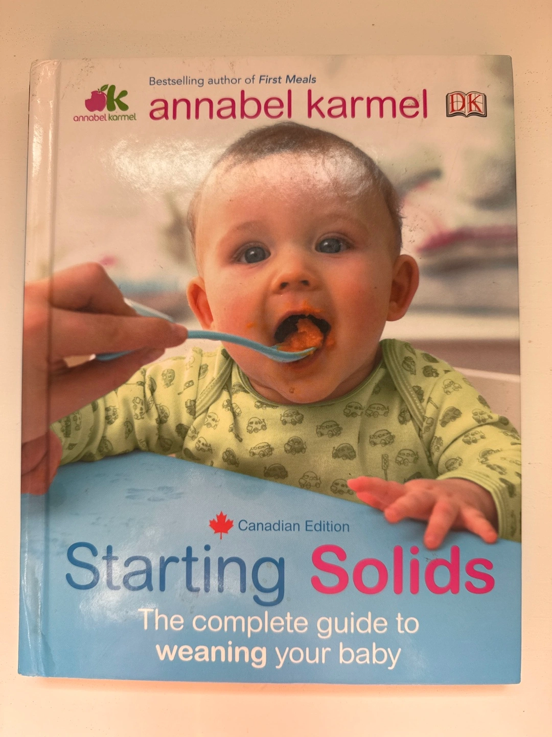 Giving away the Canadian Edition of 'Starting Solids: The Complete Guide to Weaning Your Baby' by Annabel Karmel. It's a bestselling book for parents looking for help with their little one's first meals