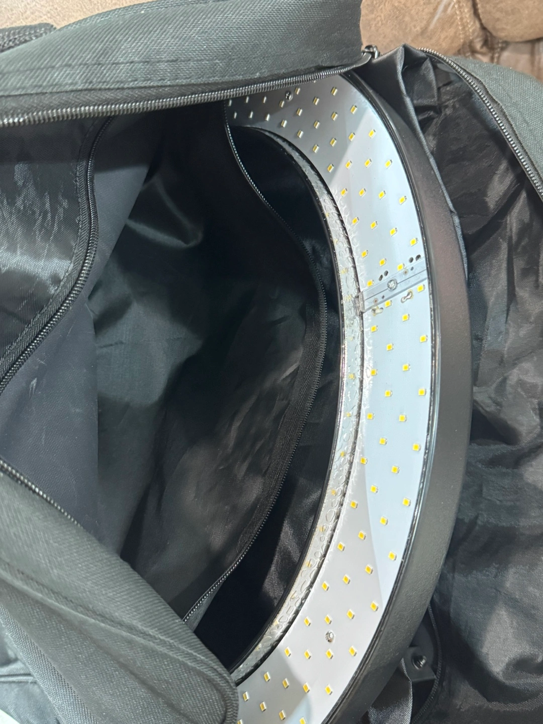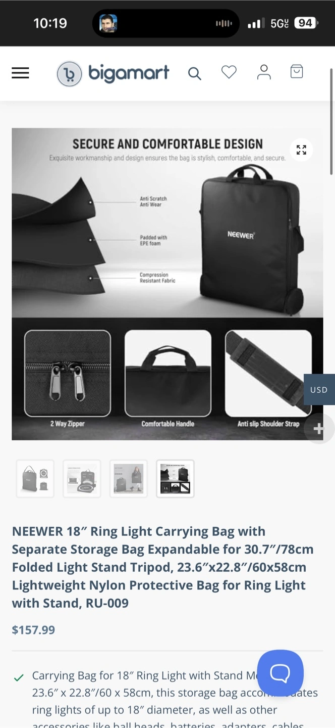 Selling a Neewer ring light that comes with a carrying bag and a Bluetooth remote shutter for iOS and Android devices. The light and accessories are all packed neatly in the included bag, making it easy to transport and set up wherever you need it!