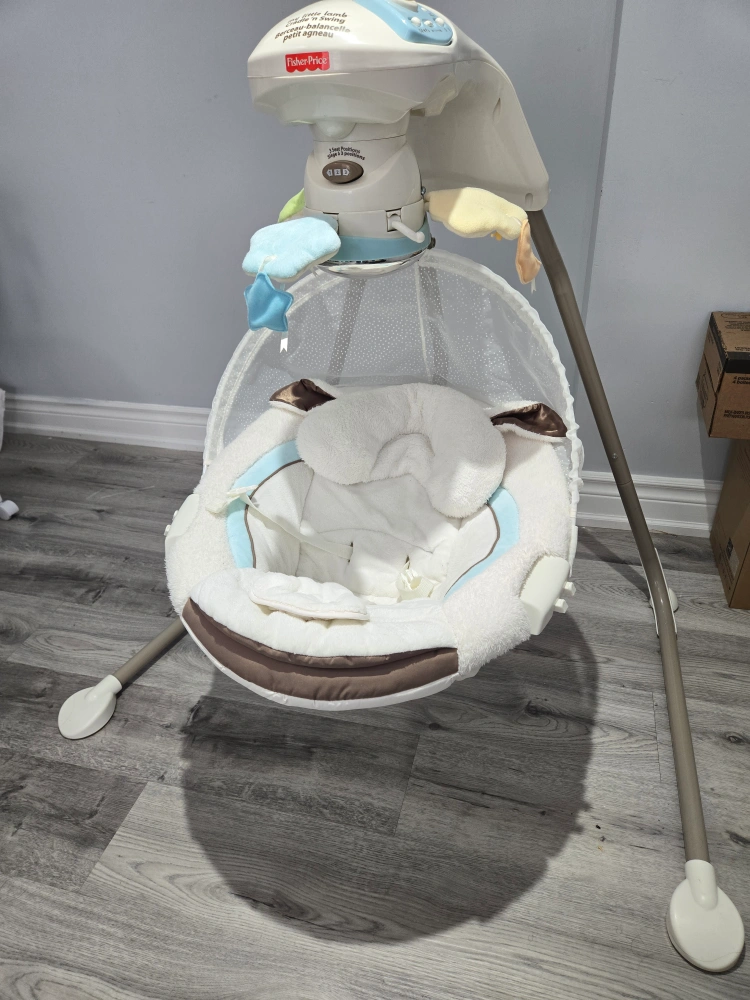 Selling a Fisher-Price Little Lamb Cradle 'n Swing! It's in great condition and ready for a new home. This cozy swing is perfect for soothing your little one with gentle motions and sounds. The soft, plush seat and overhead mobile will keep your baby comfortable and entertained. It's a lifesaver for busy parents!