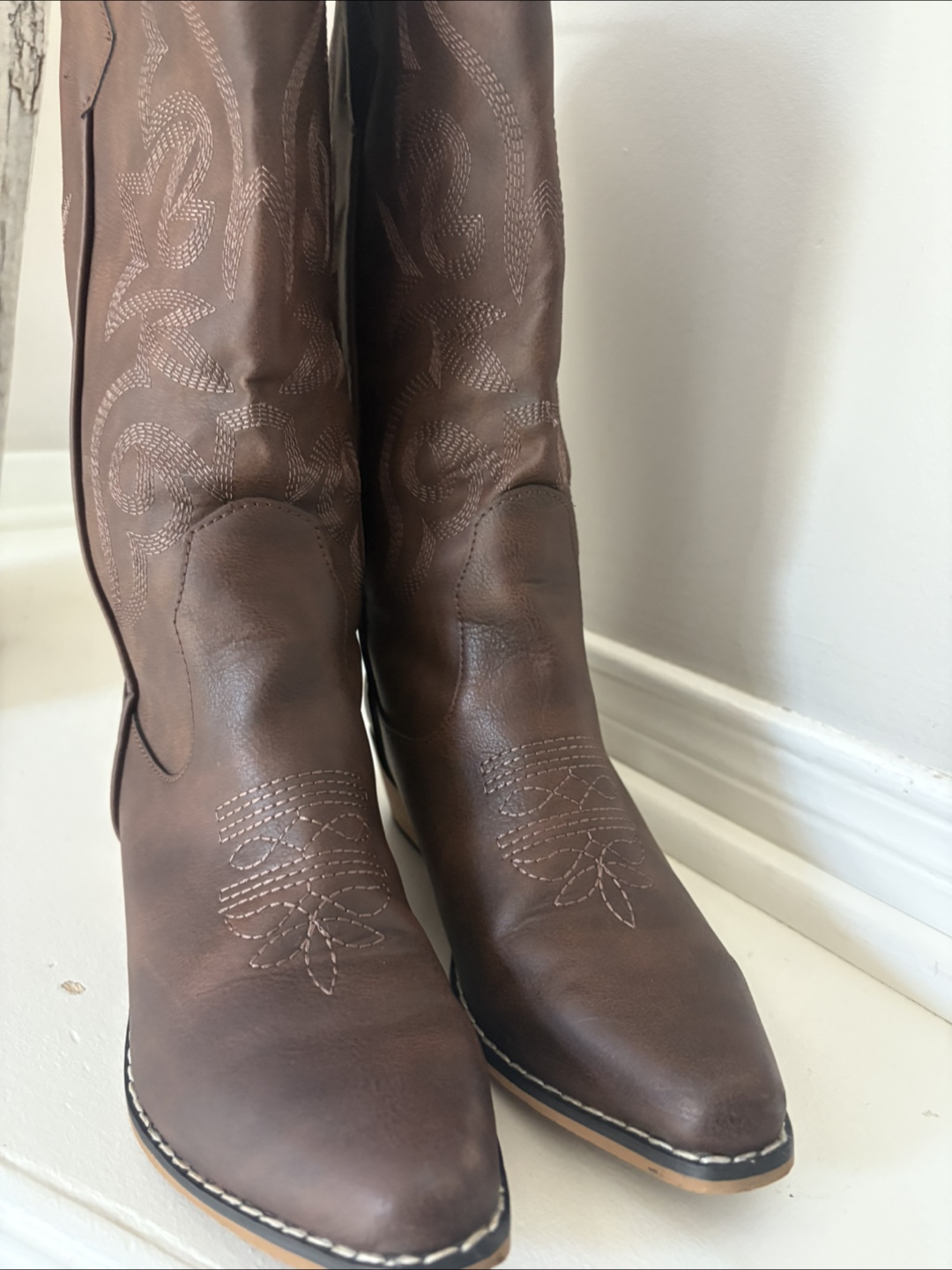 Selling a pair of Dream Pairs cowboy boots in a lovely brown colour!