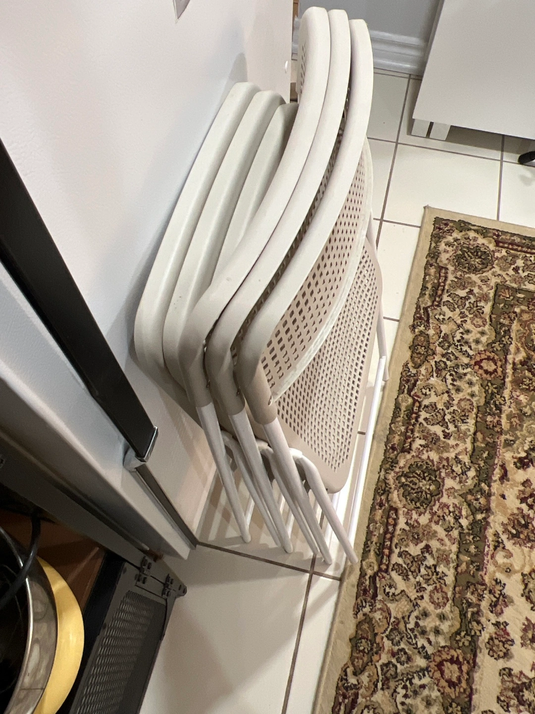 I'm selling these handy IKEA white folding chairs! They're in great condition and perfect for extra seating when you have guests or for outdoor events. They're easy to store as they fold flat. A great addition to any home!