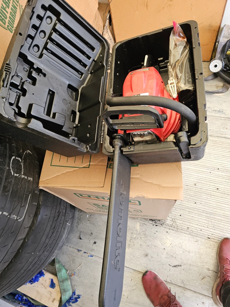 Selling a Homelite 4218C chainsaw. It comes with its original case for easy storage and transport. This chainsaw is ready to tackle your yard work!