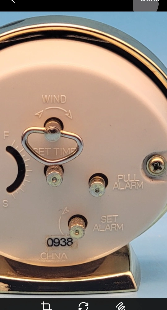 The clock has an analog display type and features a wind-up mechanical movement and alarm. ⏰️