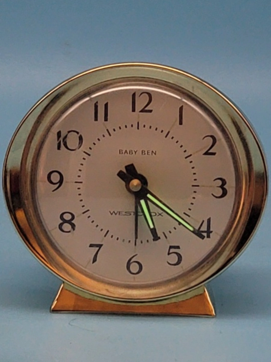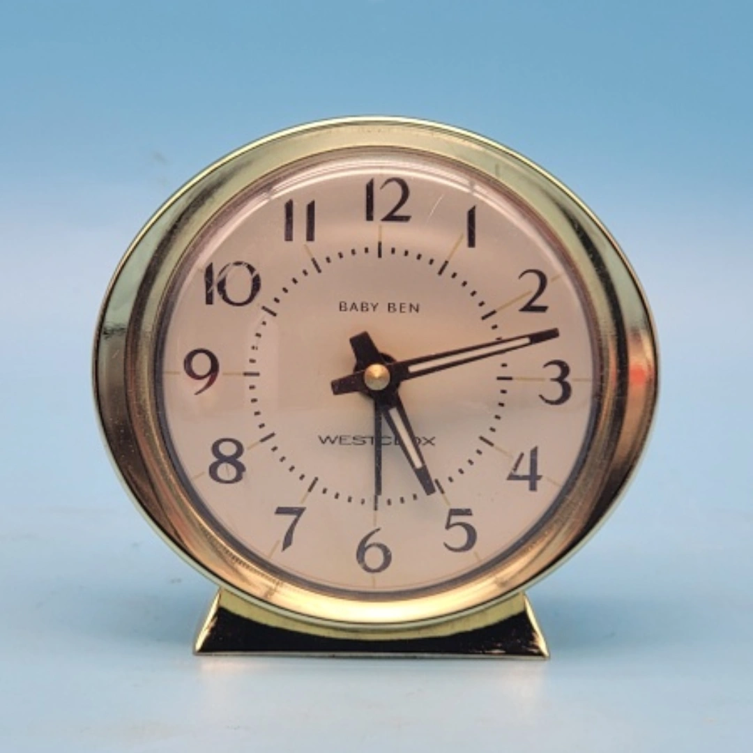 This vintage Westclox Baby Ben alarm clock is a charming addition to any room.
