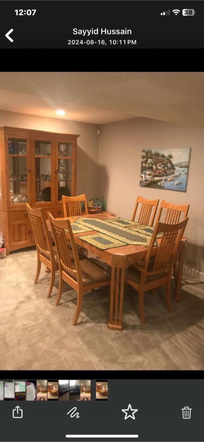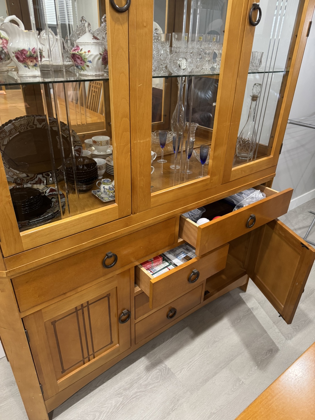 Wooden China Cabinet and Dining Chairs