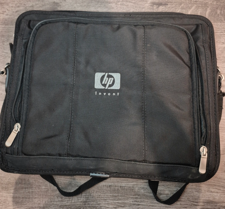HP laptop bag in great condition. It's black and has lots of compartments for storage. fits up to 16" laptop.