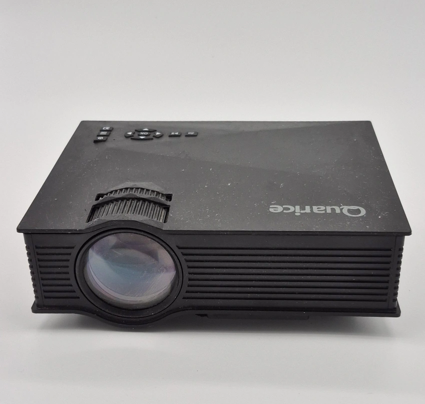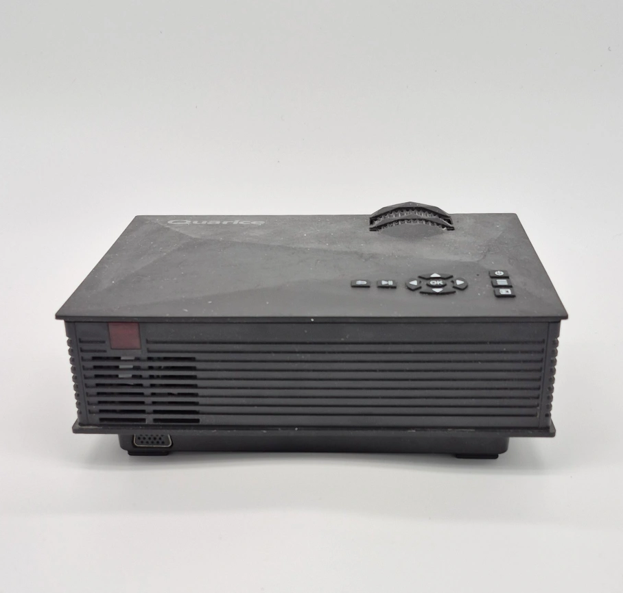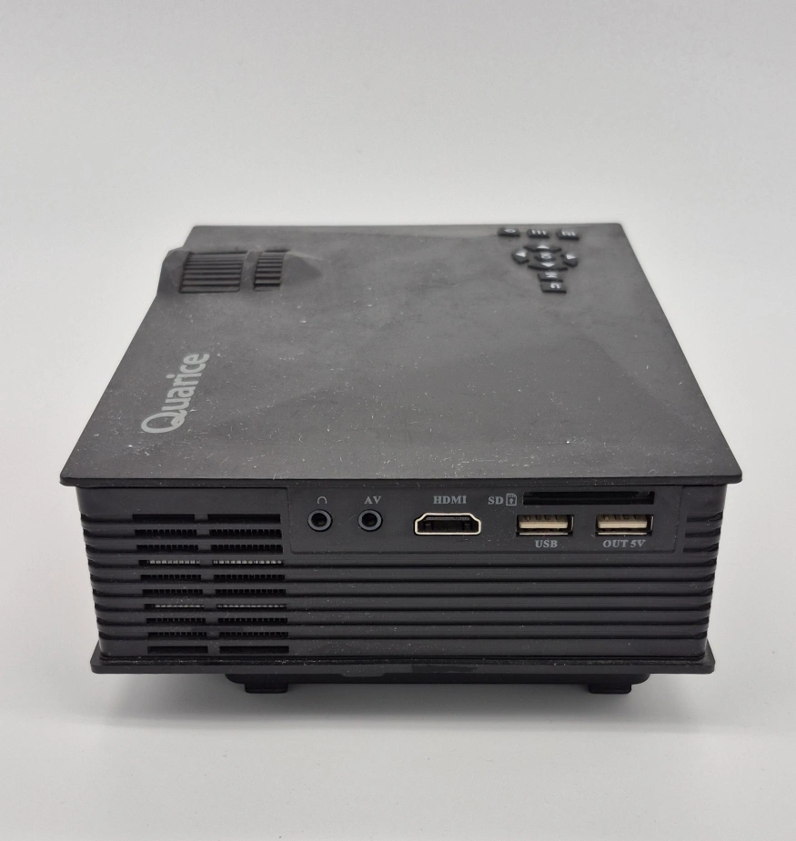 Small compact projector and streaming device. Perfect for watching movies and TV in small cozy places. Includes HDMI SPLITTER remotes for projector & Roku, HDMI/power cables.