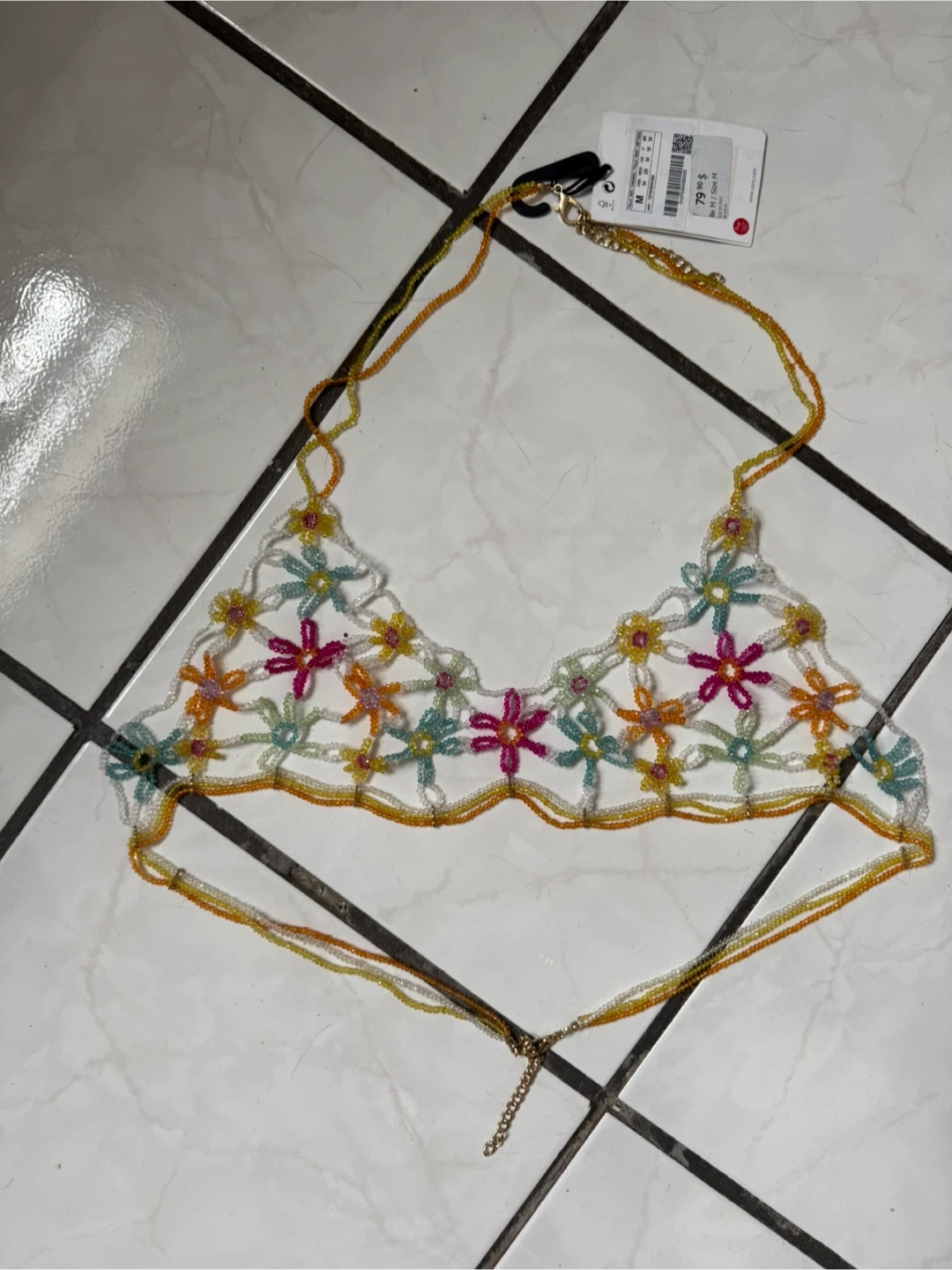 Beautiful and brand new beaded halter bralette with adjustable neck and back fasteners. Never worn!! Size medium