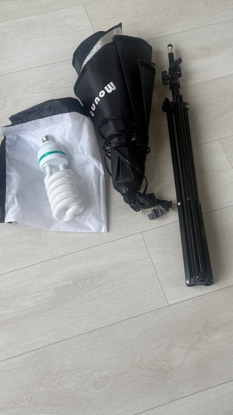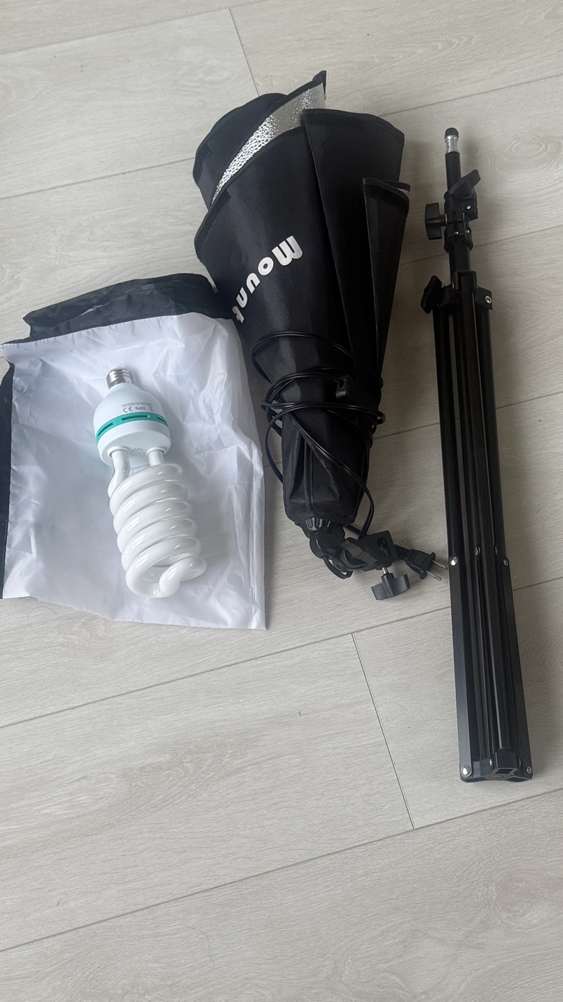 I'm selling a Mount Dog softbox lighting kit! It includes a nylon stone pattern reflector, which helps the softbox reflect enough brightness for your lighting needs. The diffuser is made with a high-quality PET fabric cover, ensuring soft and uniform light, and it's also removable and easy to install. Comes with the carrying bag