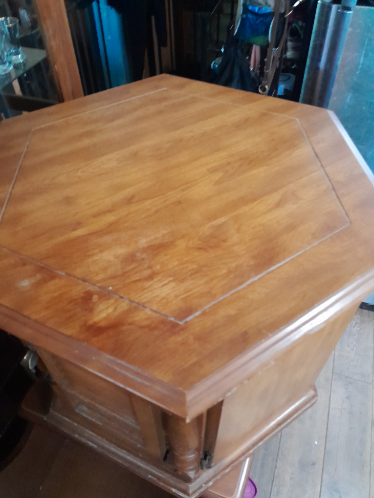 1 / 31 / 3Buy & SellWooden Side TableWooden Side Table$30Selling a lovely wooden side table. It's in good condition and would look great in any room. It has a unique hexagonal shape and a small cabinet with a door for storageConditionGoodWHERE TO MEET1478 queen st westView MapSELLERverifiedkandaceCredit Valley31522 reviews2 chats·0 favorites·68 viewsSEND CHAT TO SELLERHi kandace! I’m interested in your listing.Hi kandace! I’m interested in your listing.Get the Karrot app to chatSign In to chat