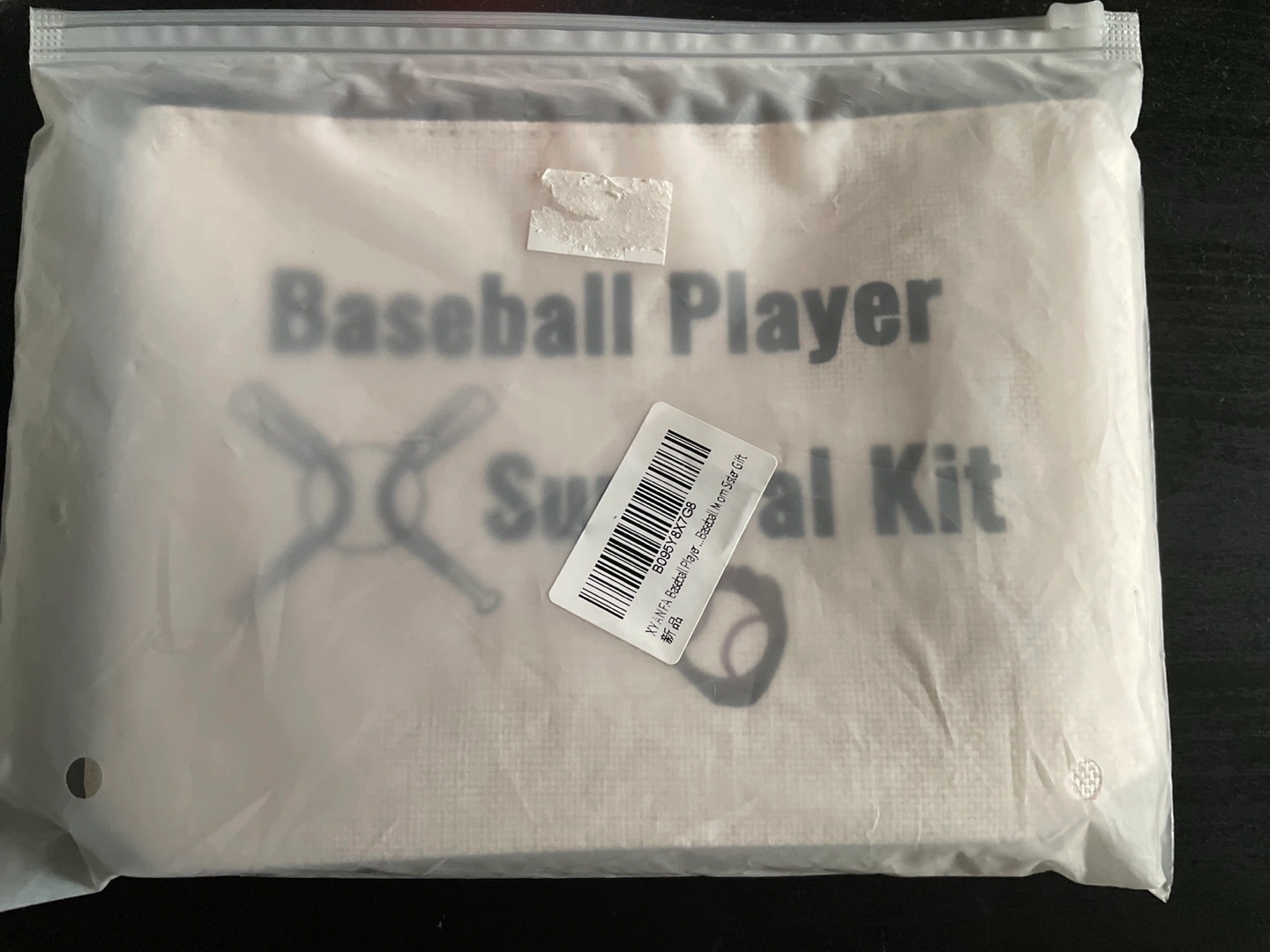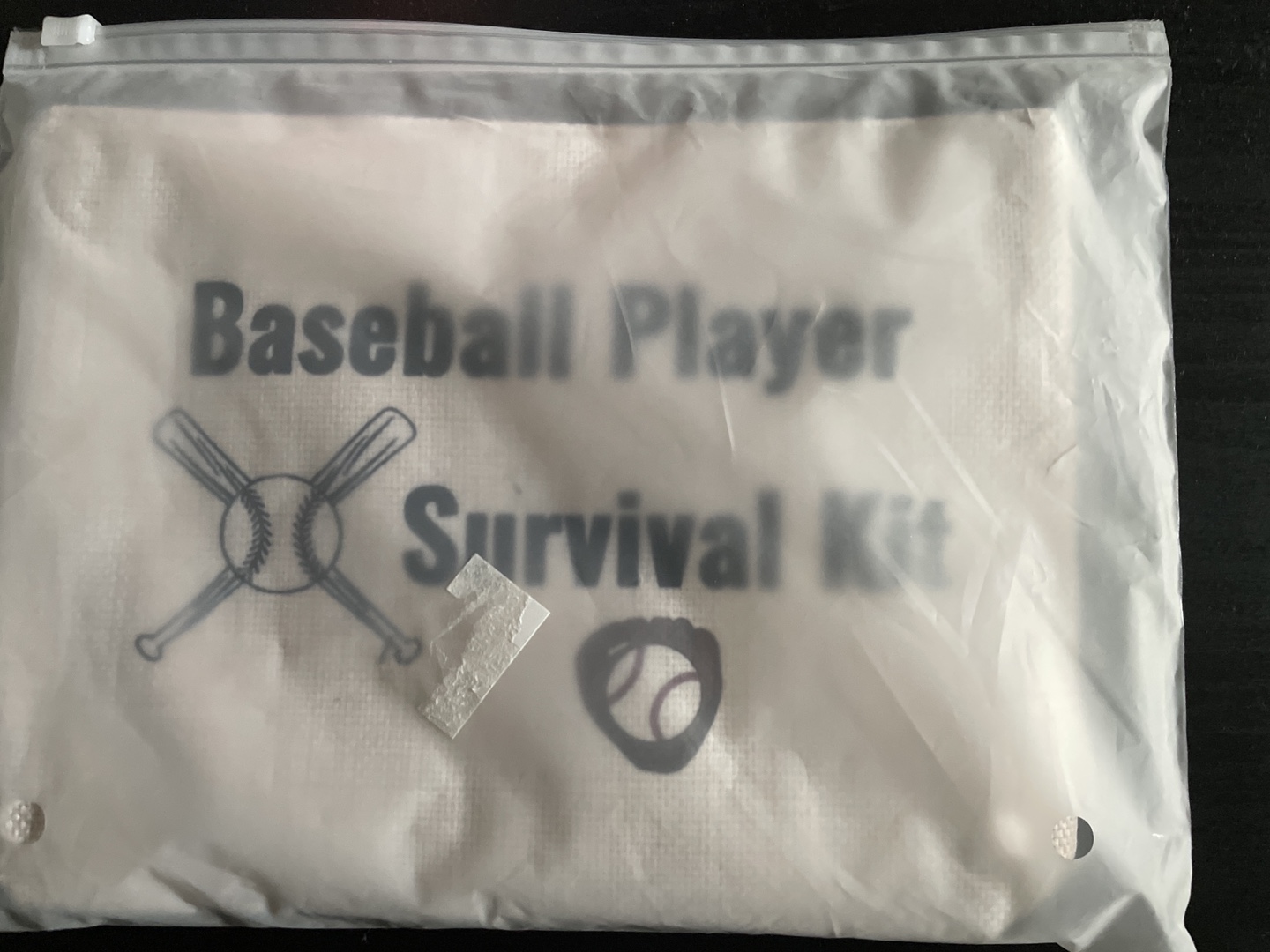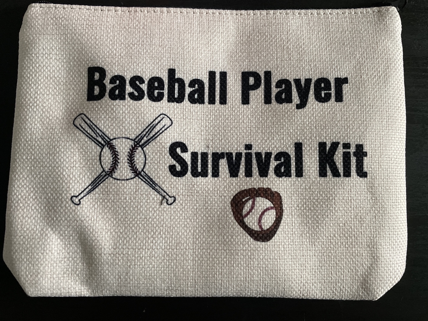 A brand new "Baseball Player Survival Kit" pouch! It's a handy little bag for keeping your essentials organized. The pouch has a zipper closure to keep everything secure. Perfect for any baseball enthusiast