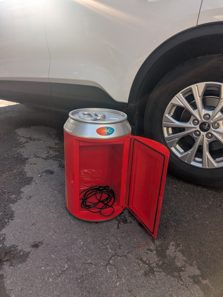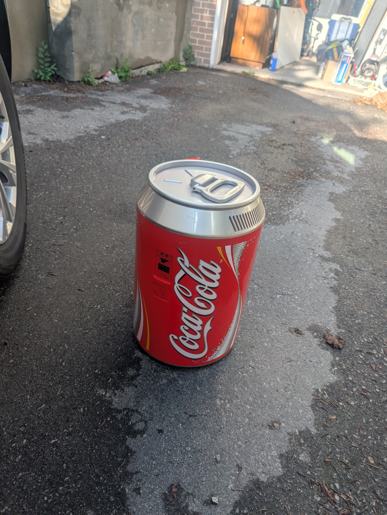 Selling a Coca-Cola can-shaped mini fridge! It's perfect for keeping your drinks cool. The fridge is red and shaped like a classic Coca-Cola can. Comes with the power cord 12v. for vehicle