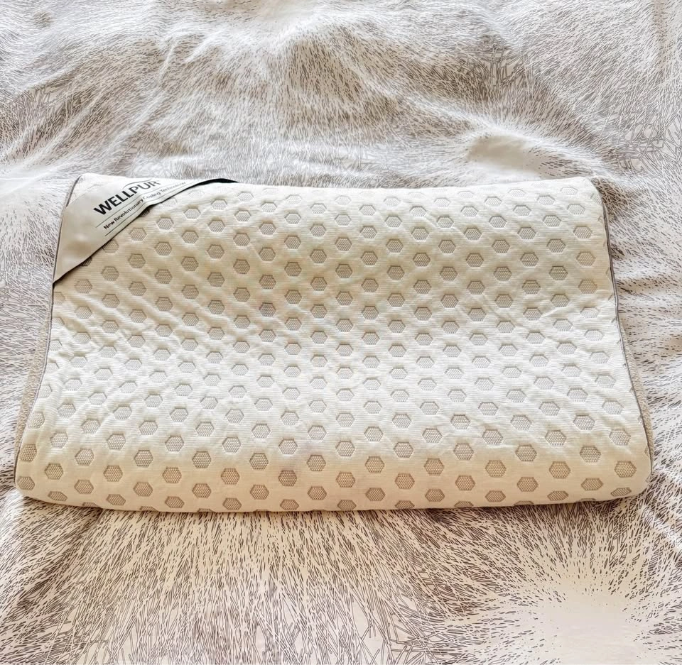 Wellpur Gel memory foam pillow with ice-cooling treatment on blue padding cover