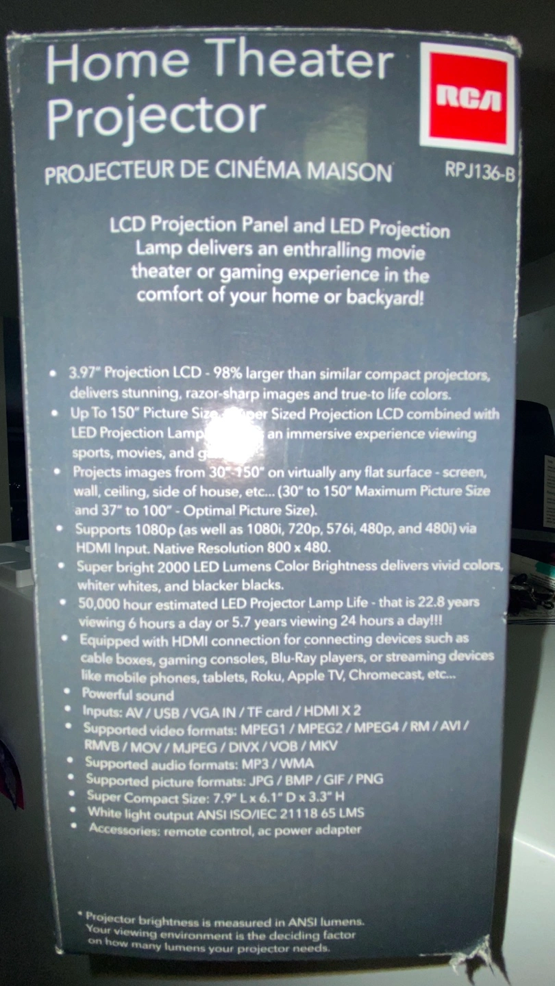 Projector great for watching movies and TV shows with friends and/or family.