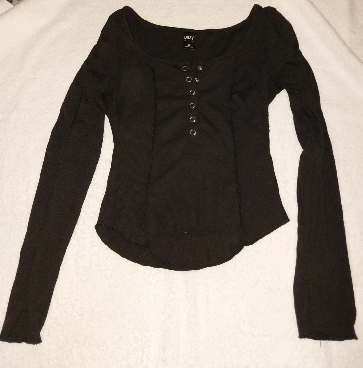 Selling a DAZY long sleeve top in black. It's a size XS and features a row of decorative buttons down the front. Great for layering or wearing on its own!