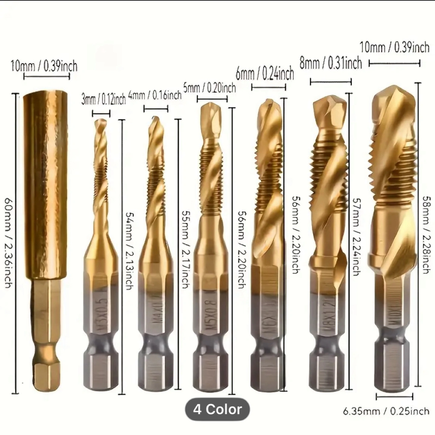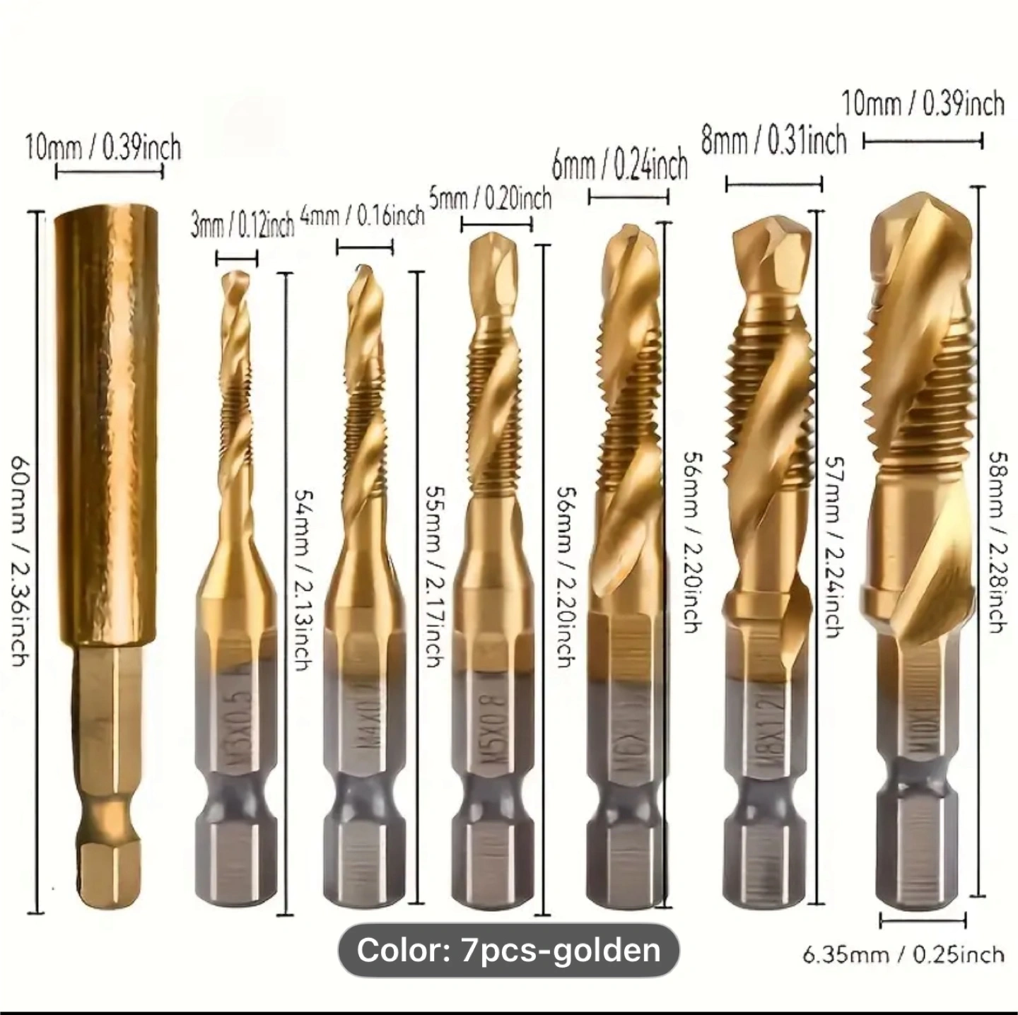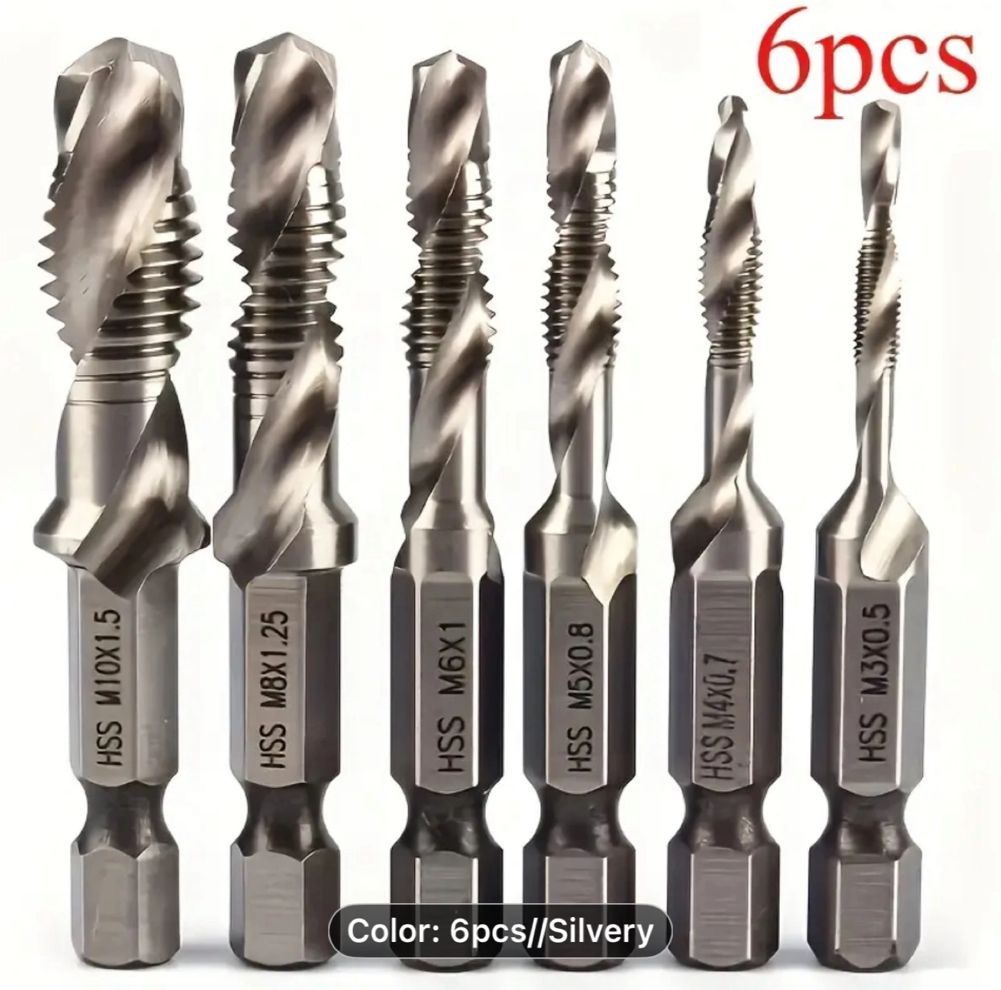 6pcs Drill Tap Combination Bit Set - High-Speed Thread M3 M4 M5 M6 M8 M10 Taps for Efficient Screw Tapping, Countersink Drilling, And Precise Hole Making - Durable Tool for DIY And Professional Use