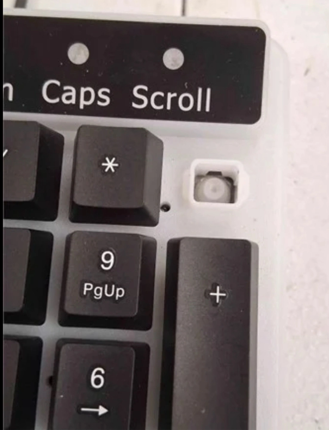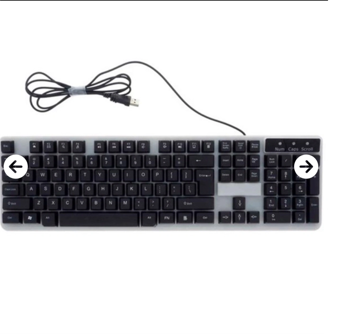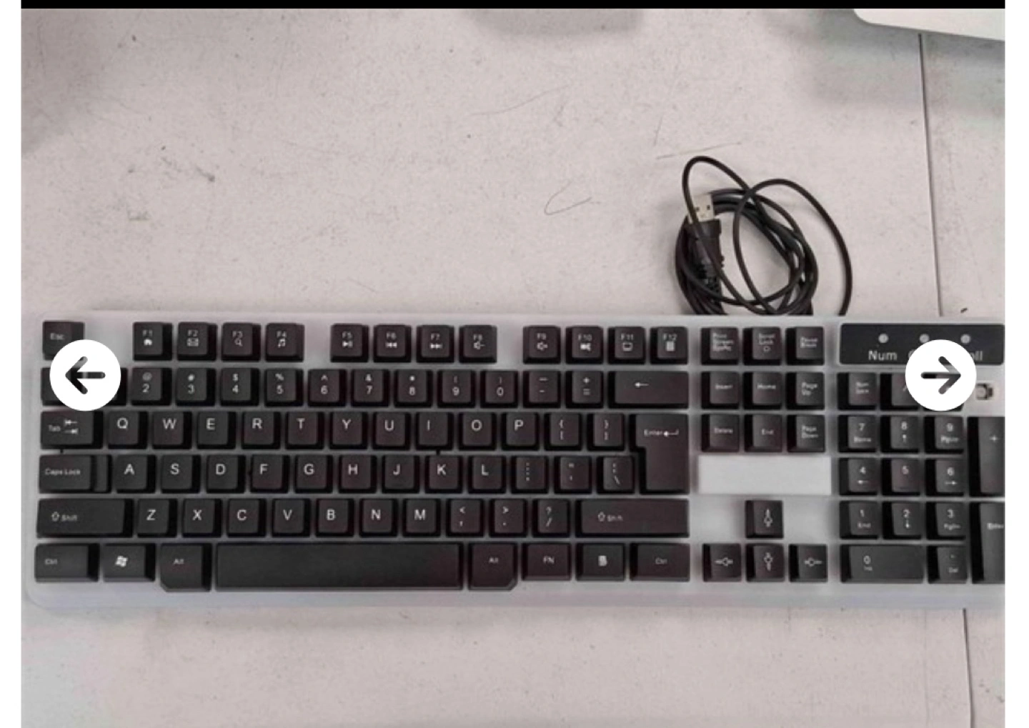 Selling a used computer keyboard. It's in good working condition and ready to use. The keyboard features a standard layout with a number pad. It has a black keycap colour and a grey base.