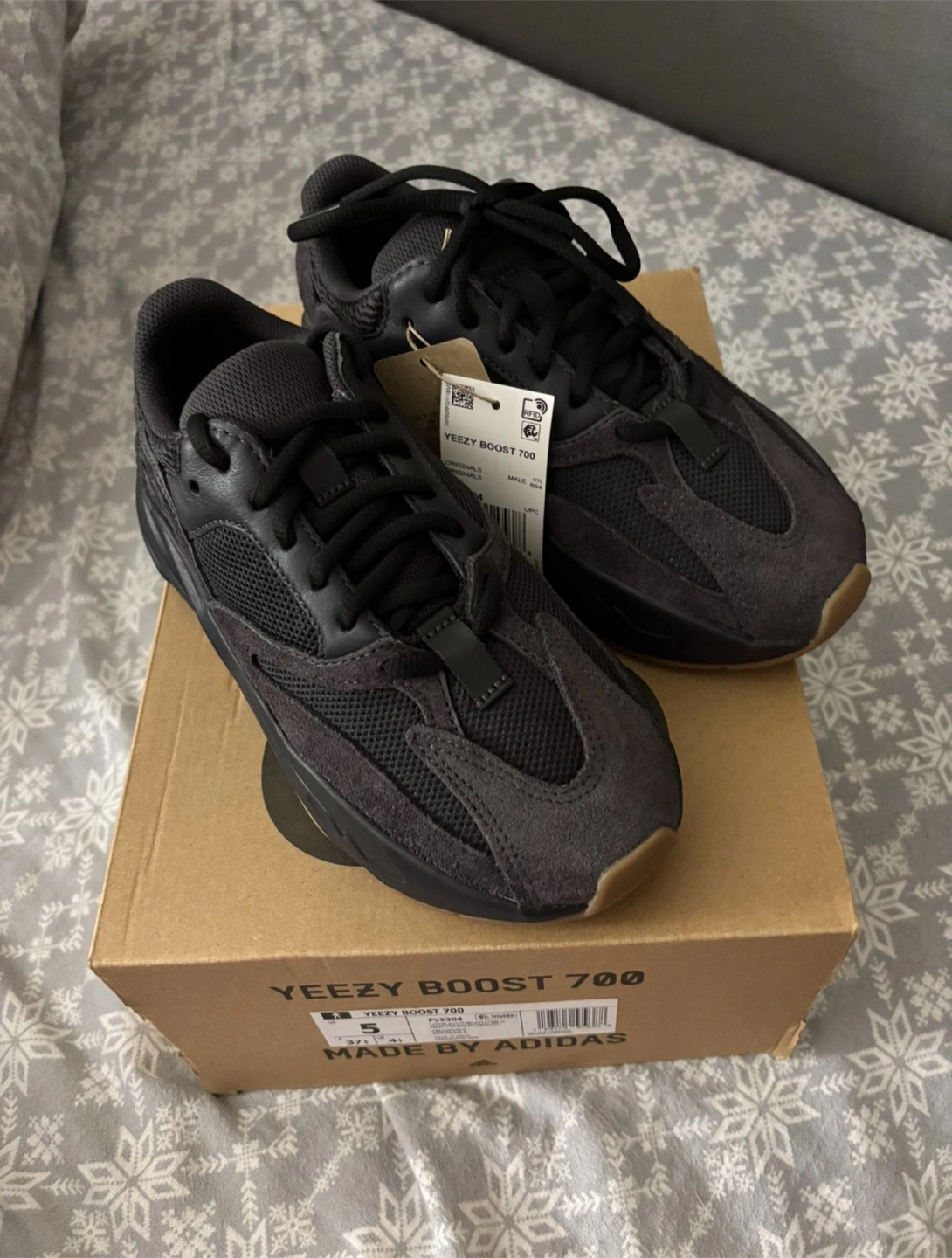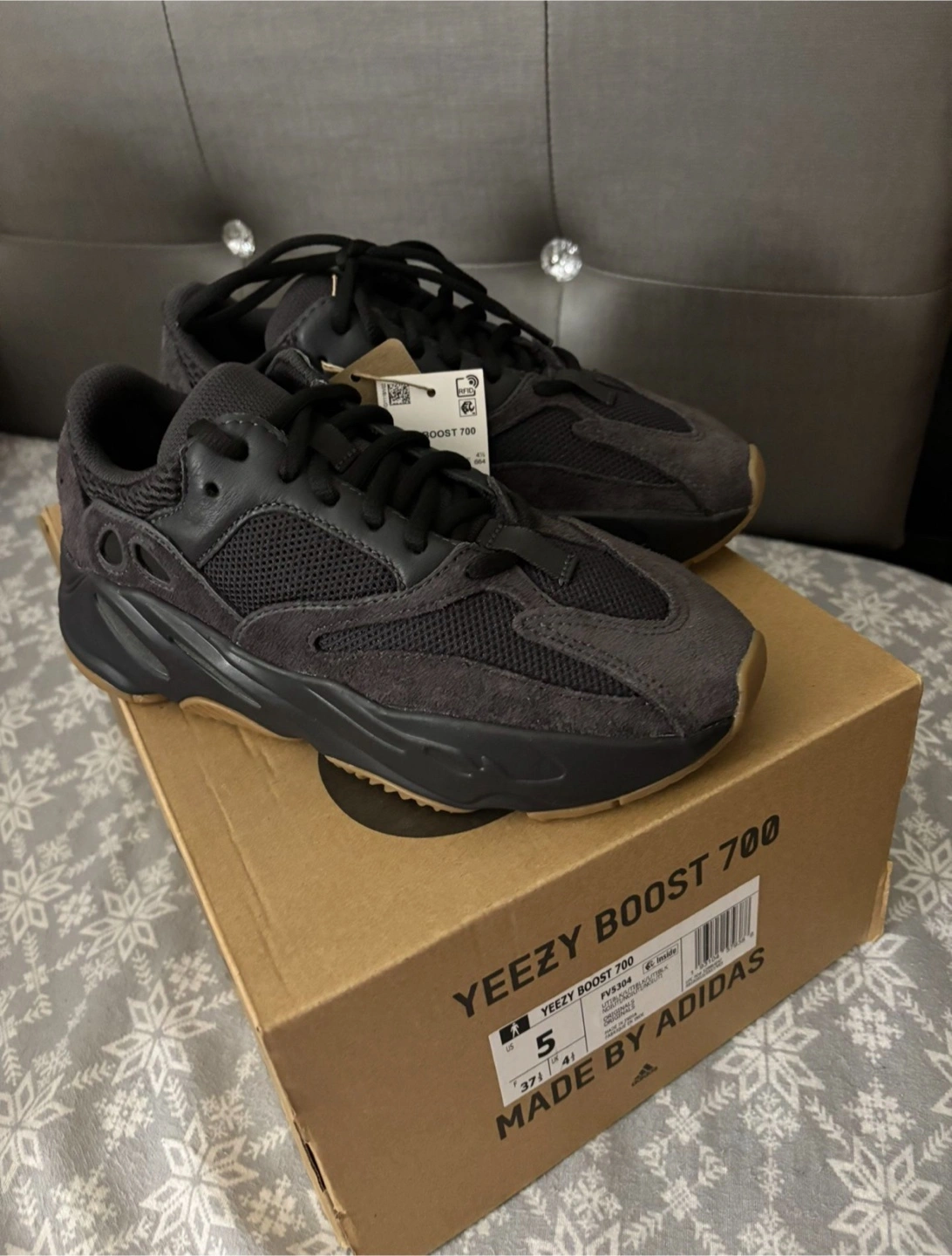 Selling a pair of Adidas Yeezy Boost 700 sneakers in size 5M. They are in great condition and come with the original box.