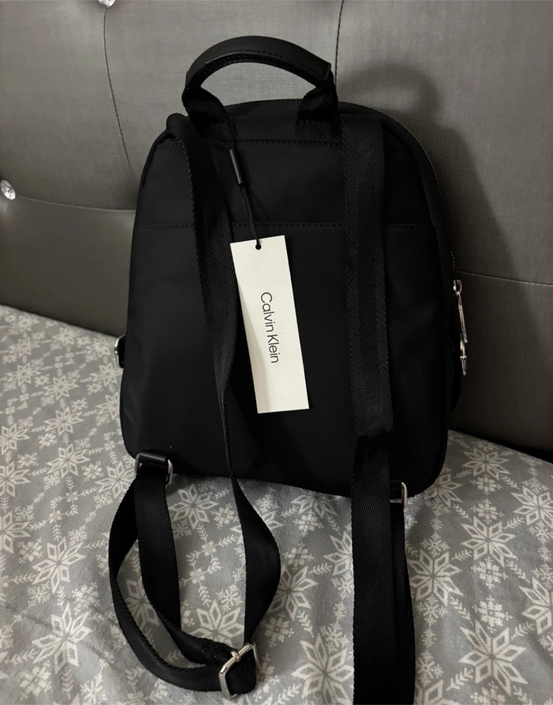 This is a brand new Calvin Klein backpack in black! The size is perfect for everyday use and the material is durable. It's a stylish and practical bag for carrying your essentials