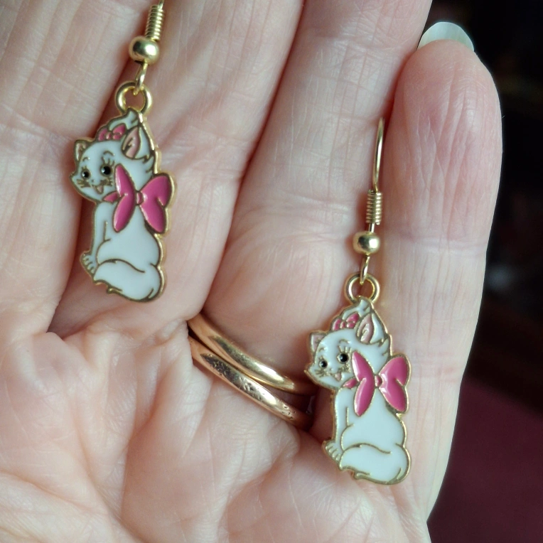 These adorable earrings feature Marie, the cute kitten from Disney's Aristocats! They're perfect for any Disney fan or cat lover. The earrings are ready to add a touch of whimsy to your outfit!
