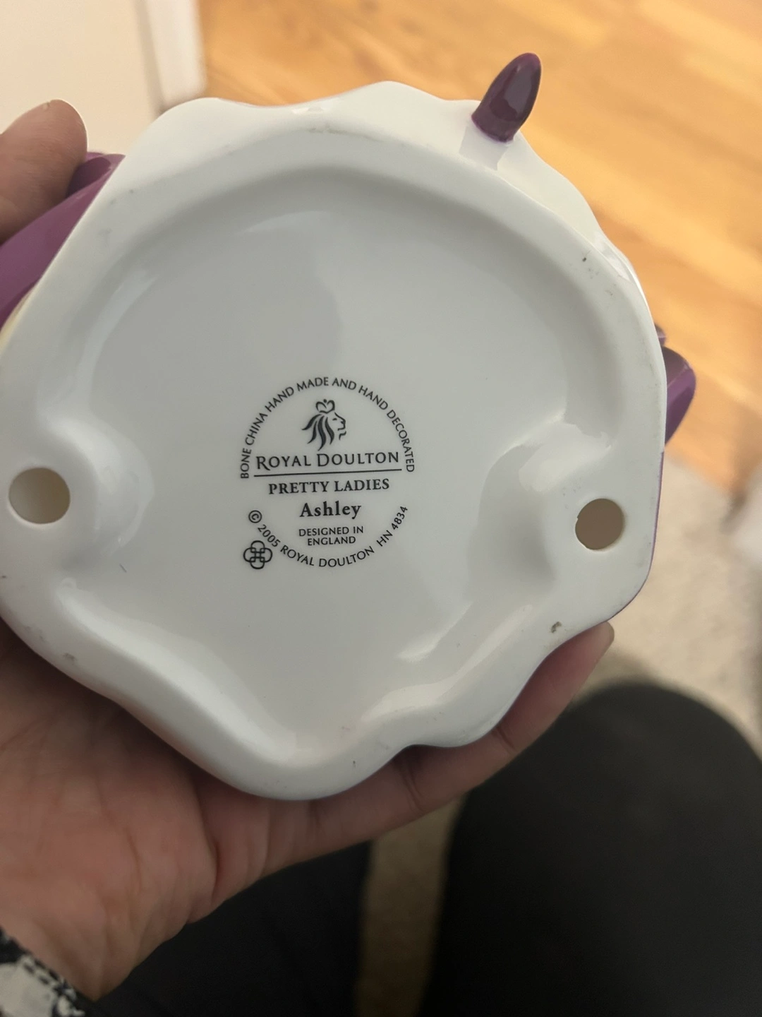 This is a Royal Doulton Pretty Ladies figurine, model Ashley. It's made of bone china and hand decorated. Designed in England. A beautiful addition to any collection!