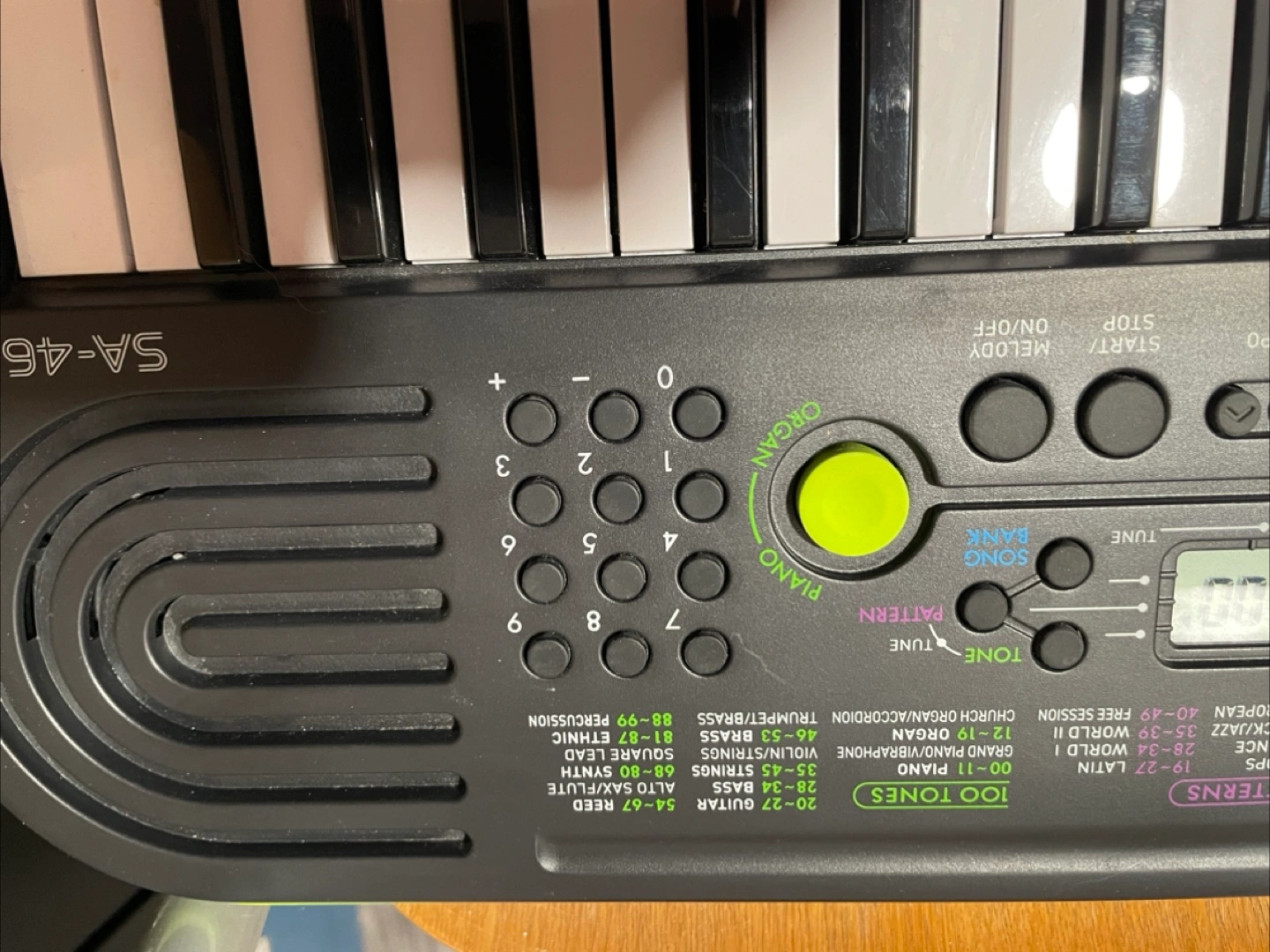 Selling a Casio SA-46 keyboard! It features 100 tones, 50 patterns, and 10 song bank selections. Perfect for beginners or anyone looking for a fun, portable instrument. In great condition!