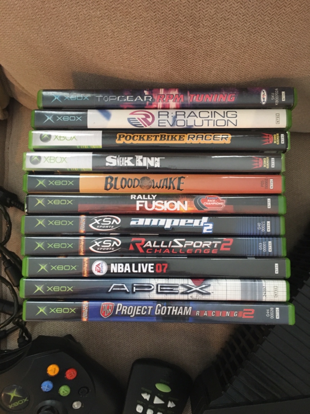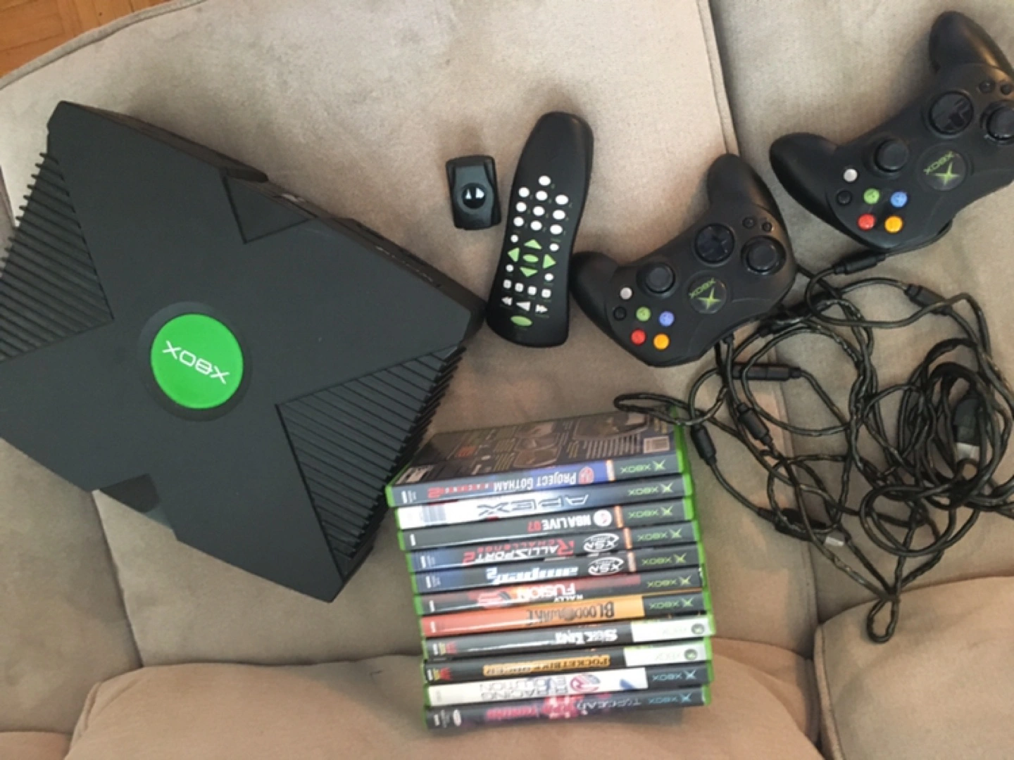 Selling an original Xbox console in good condition! Comes with two controllers, a remote, and a selection of games including: