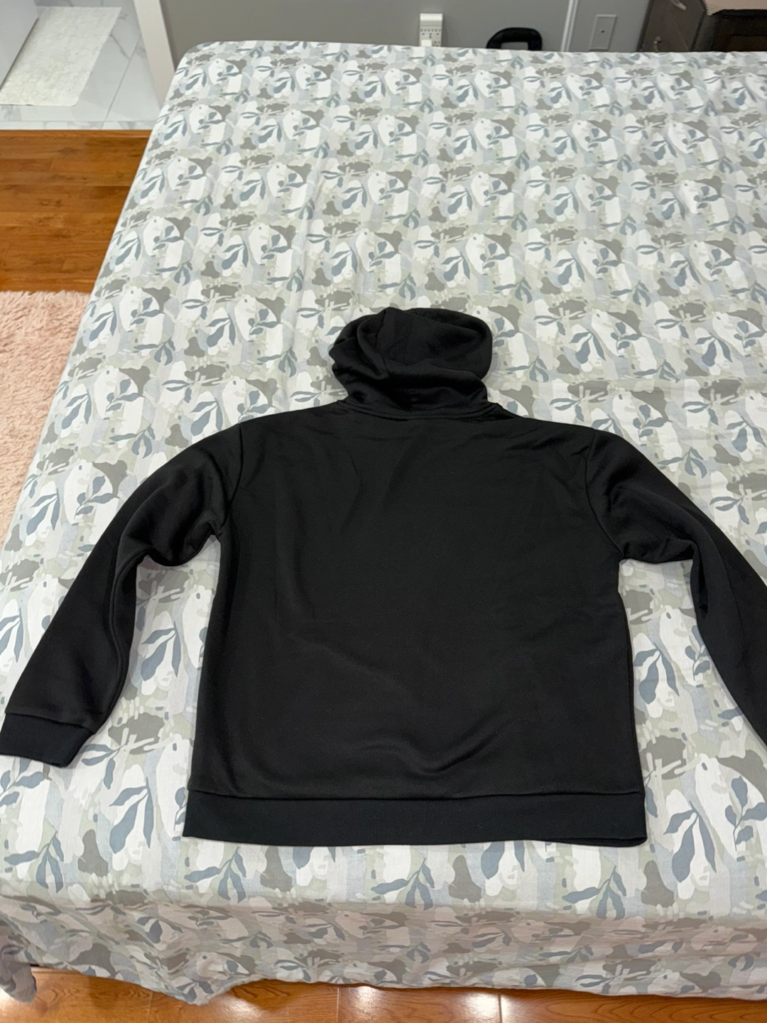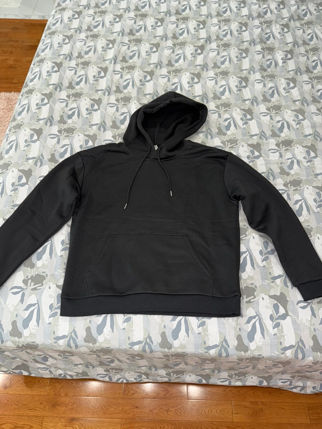 Selling a black hoodie. It's completely brand new never worn and ready for a new home! The material feels soft and comfortable, perfect for those chilly Canadian evenings. It features a hood and a front pocket, making it both practical and stylish