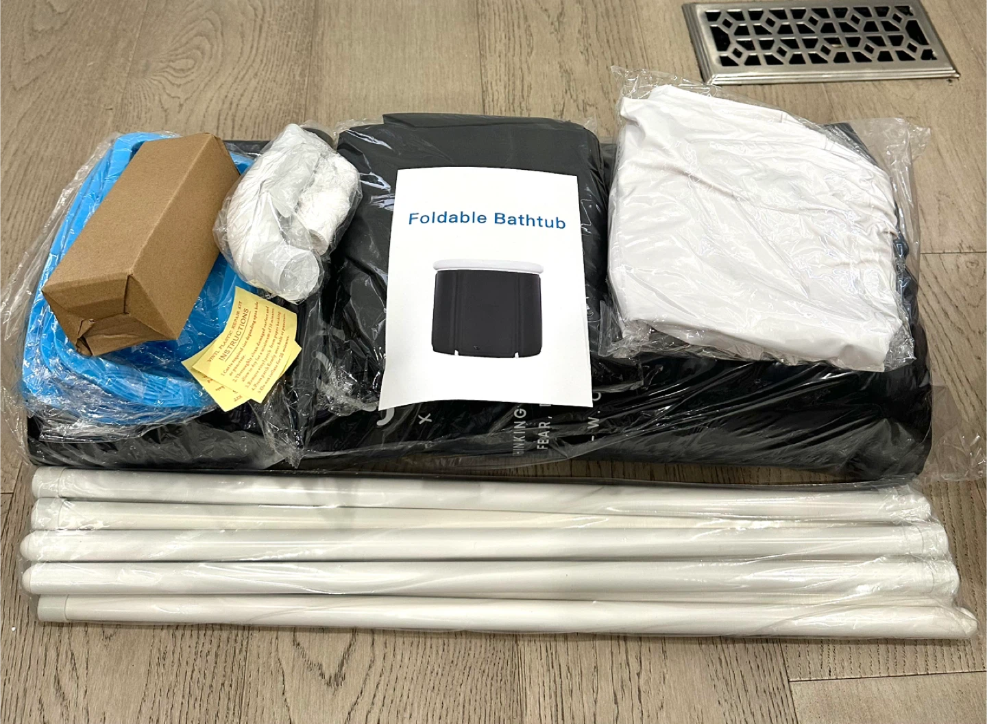 Selling a brand new, foldable bathtub still in its original packaging! It comes with all the components neatly packed and ready for easy assembly. Perfect for small spaces or anyone needing a portable bathing solution