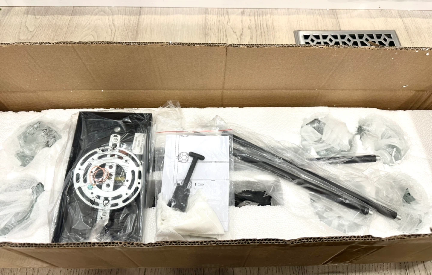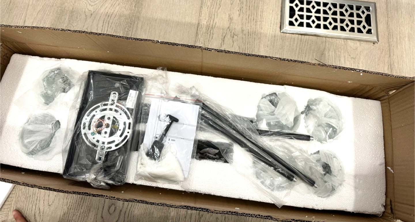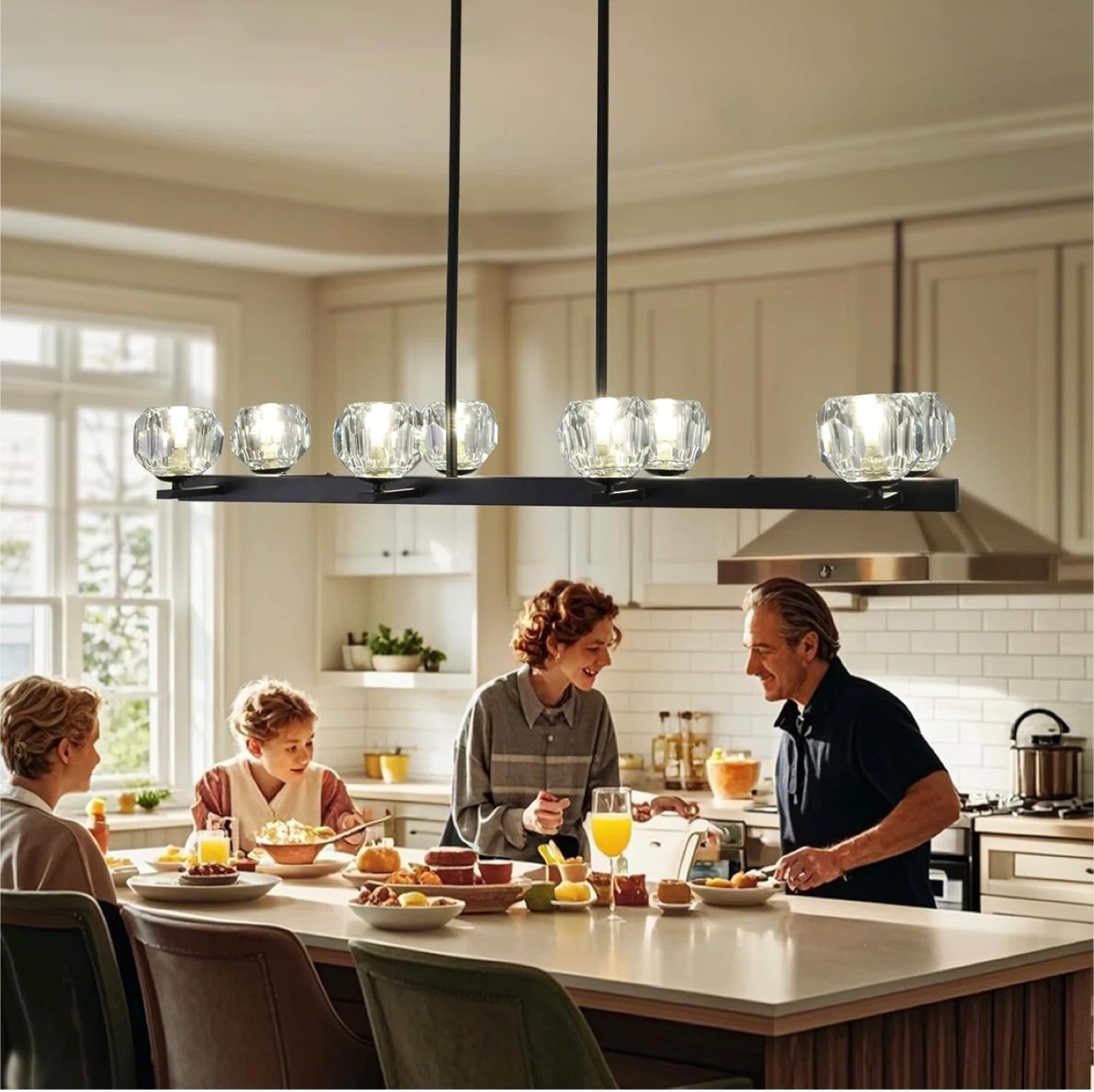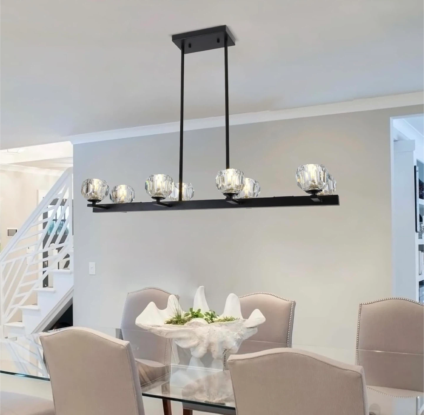 Selling a brand new black 8-light crystal pendant lighting fixture! It's still in its original packaging and includes all the components. This stylish light fixture requires G9 bulbs (not included). The dimensions are: 38" height, 36" width, 8.7" length, and 4.7" width.