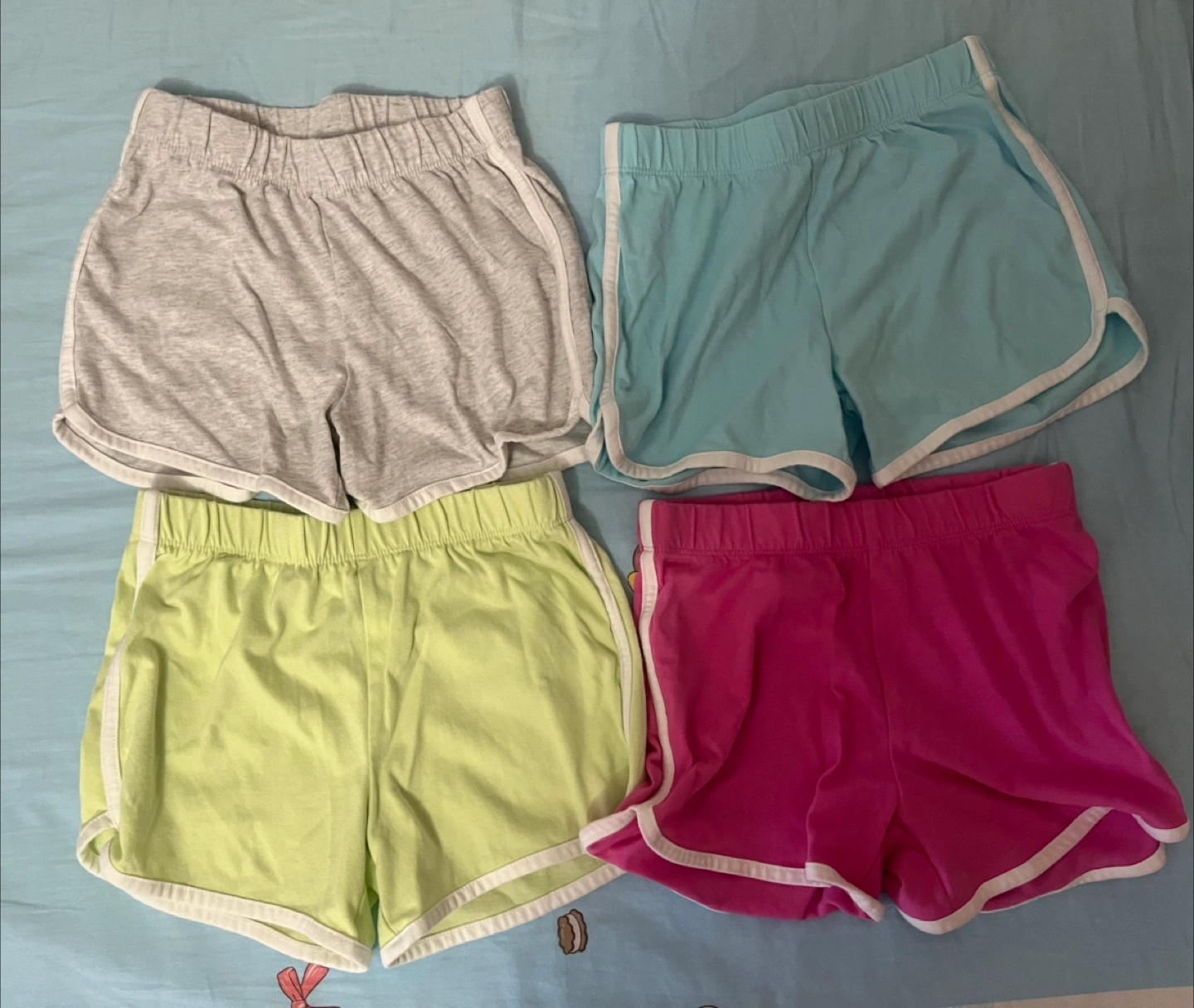 Brand new. They are size M (7/8) and come in a variety of colours: grey, blue, green, and pink. Four pairs of shorts are only $15, and one pair is $5.Cash only
