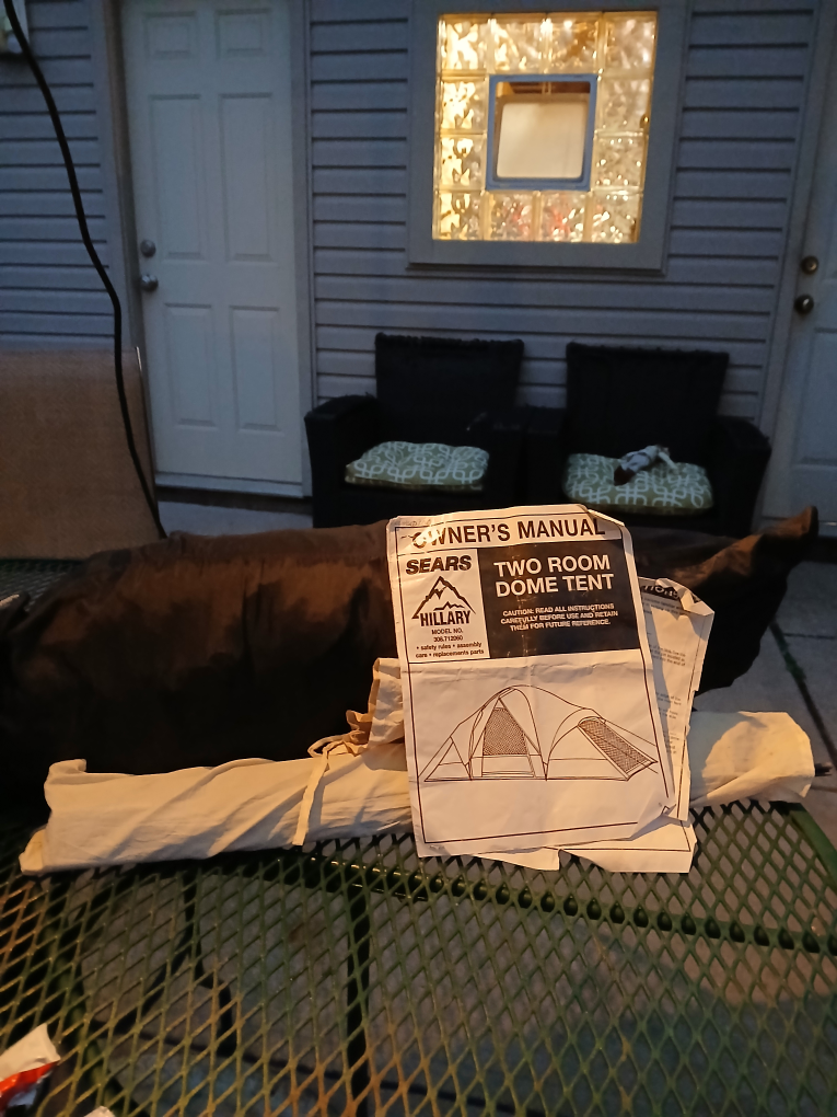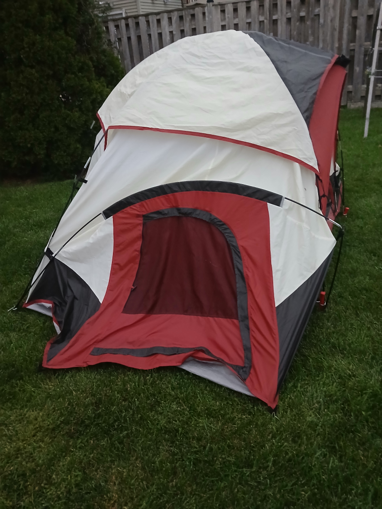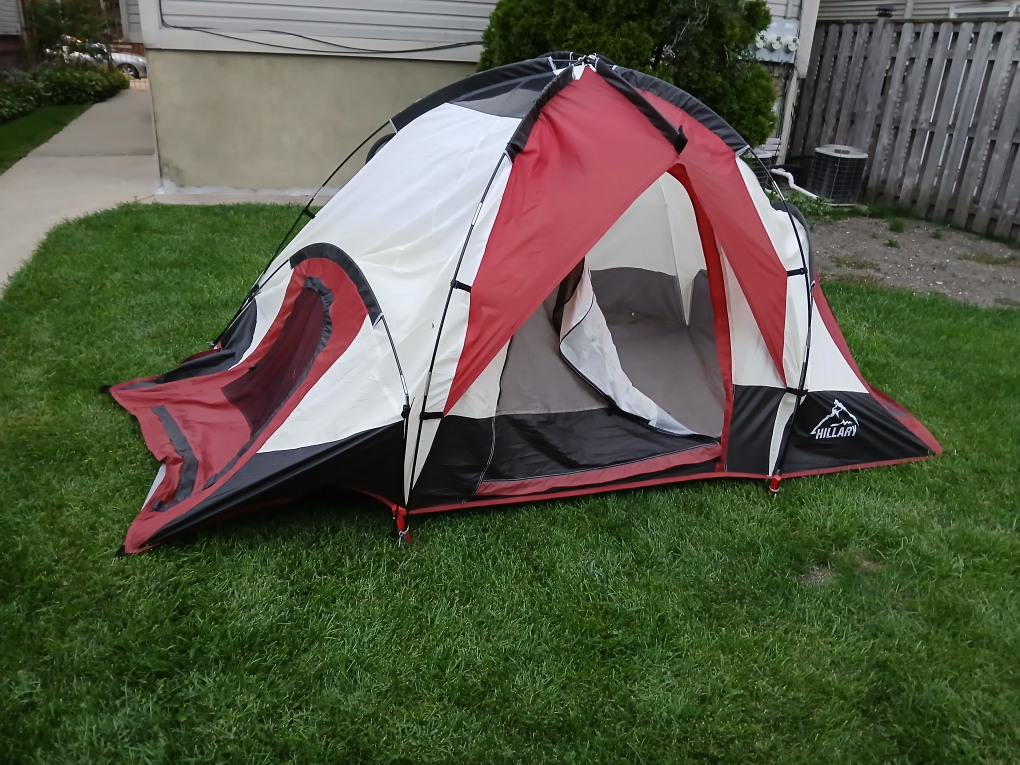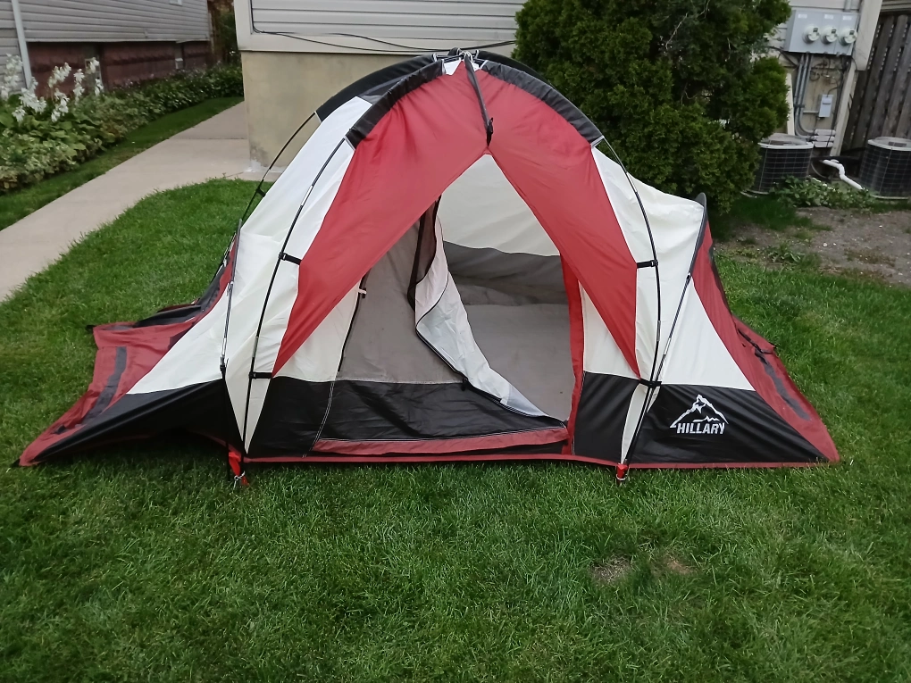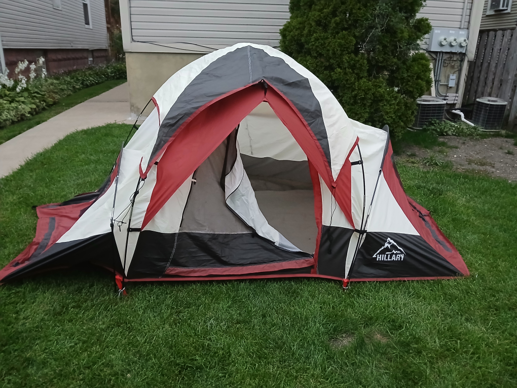 Selling a Hillary two-room dome tent. It's in good condition and ready for your next camping trip! Includes the owner's manual for easy setup.