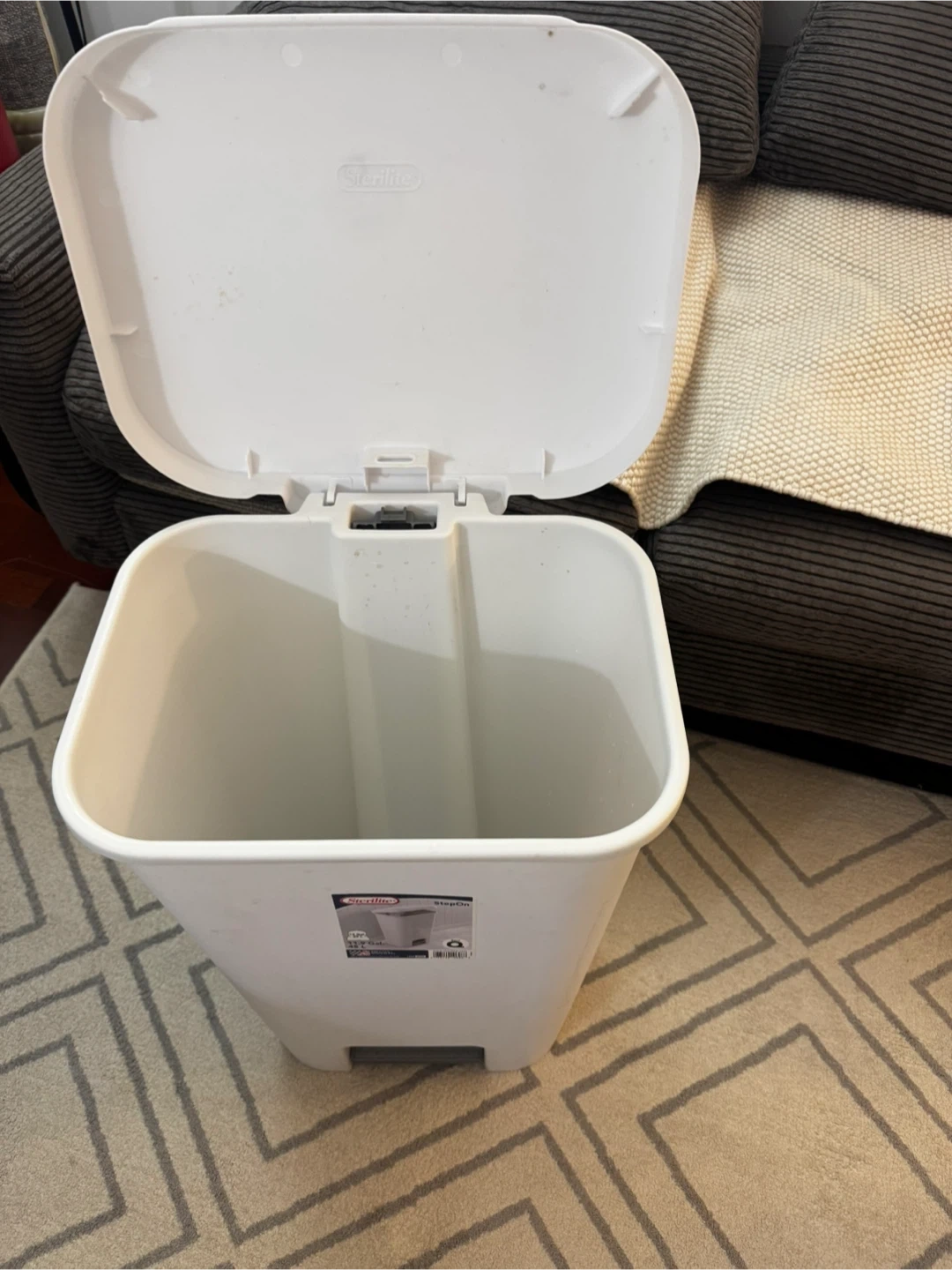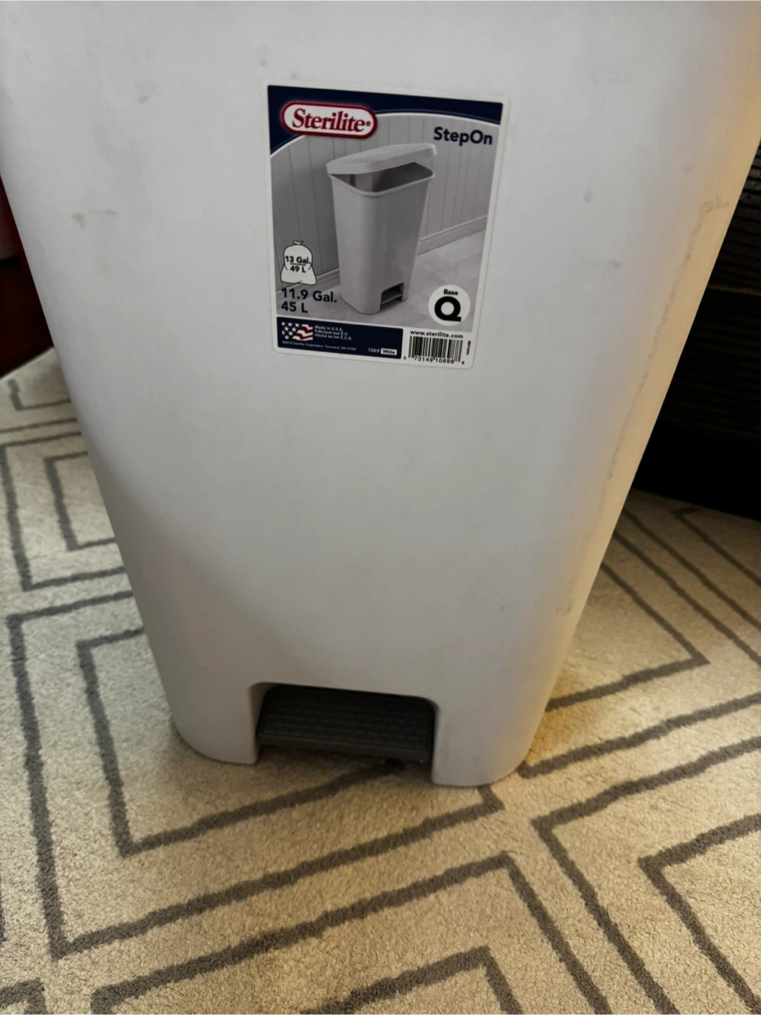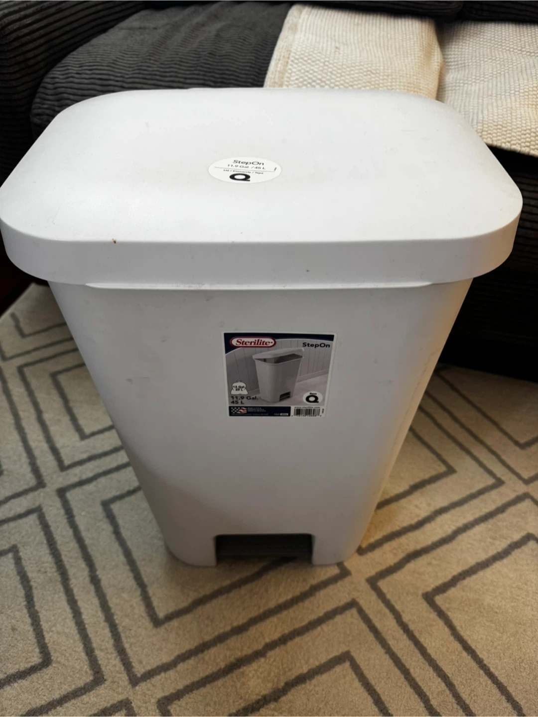 Selling a Sterilite StepOn trash can! It's a convenient and hands-free way to dispose of waste. The can has a capacity of 11.9 Gal / 45 L and features a step-on mechanism for easy opening. Perfect for any room in the house! $20 Yonge and finch area