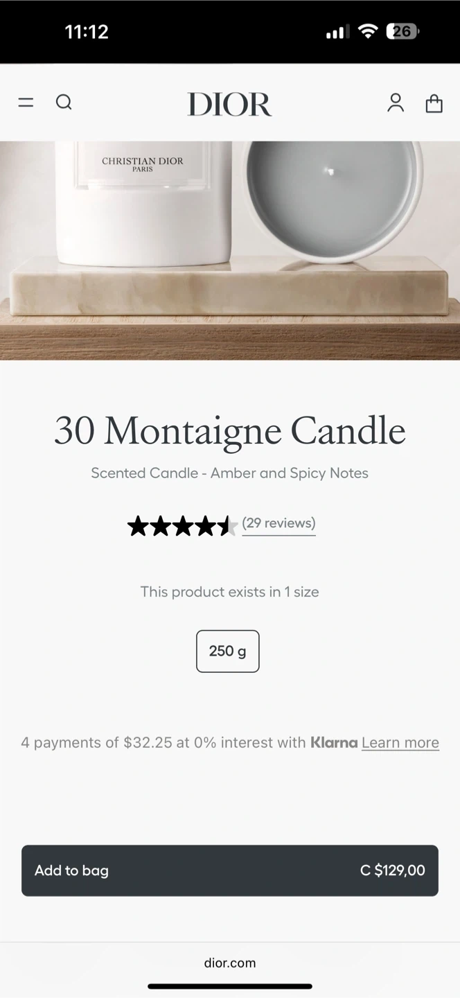 Selling a brand new Dior 30 Montaigne Candle. It's a scented candle with amber and spicy notes, and it comes in a 250g size. Originally bought for $129.00, this candle is still in its original packaging and ready to fill your home with a luxurious fragrance