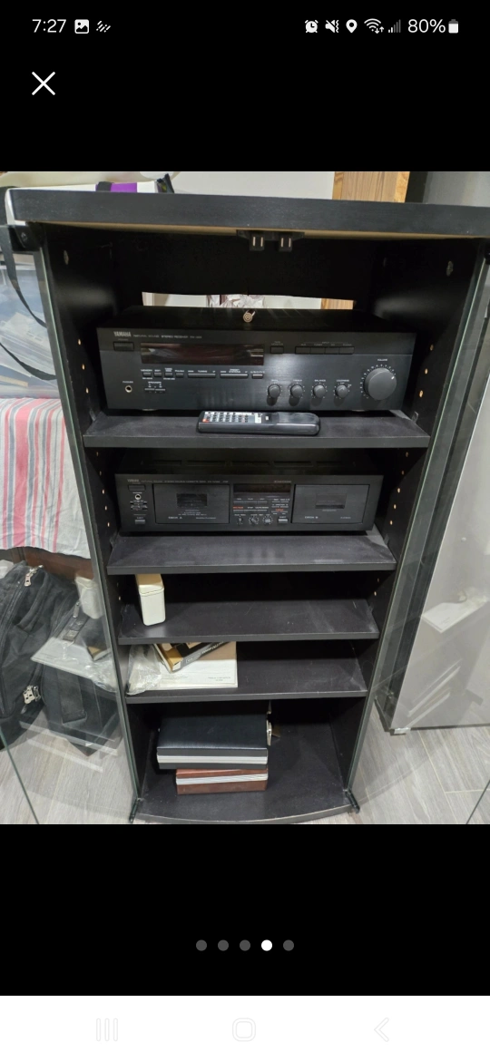 Selling a Yamaha RX-395 Natural Sound Stereo Receiver , dual cassette, speakers and cabinet!!! Everything 100$ firm. NOT selling separate components . It all goes.