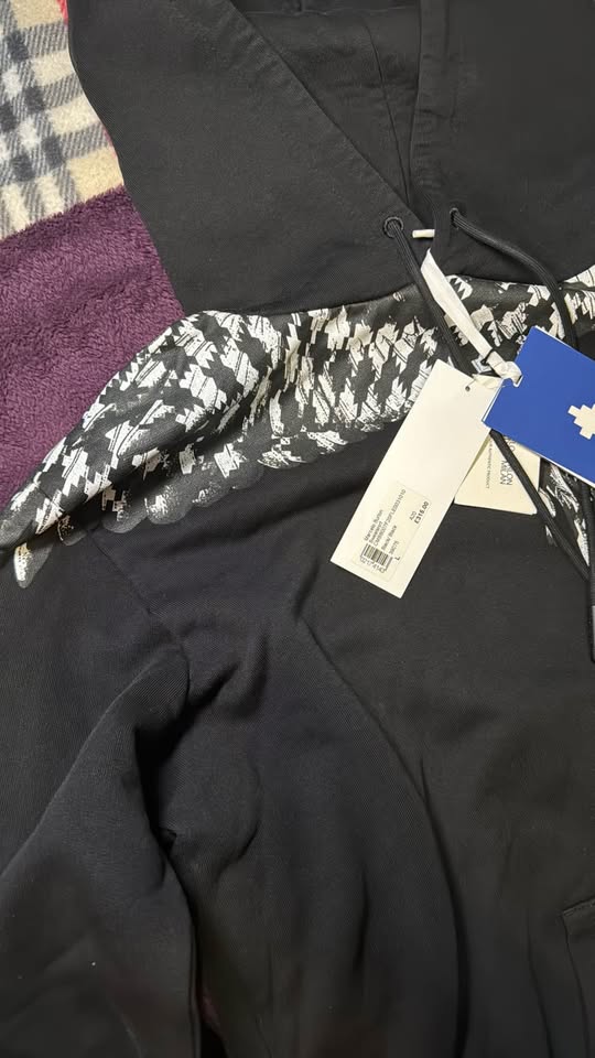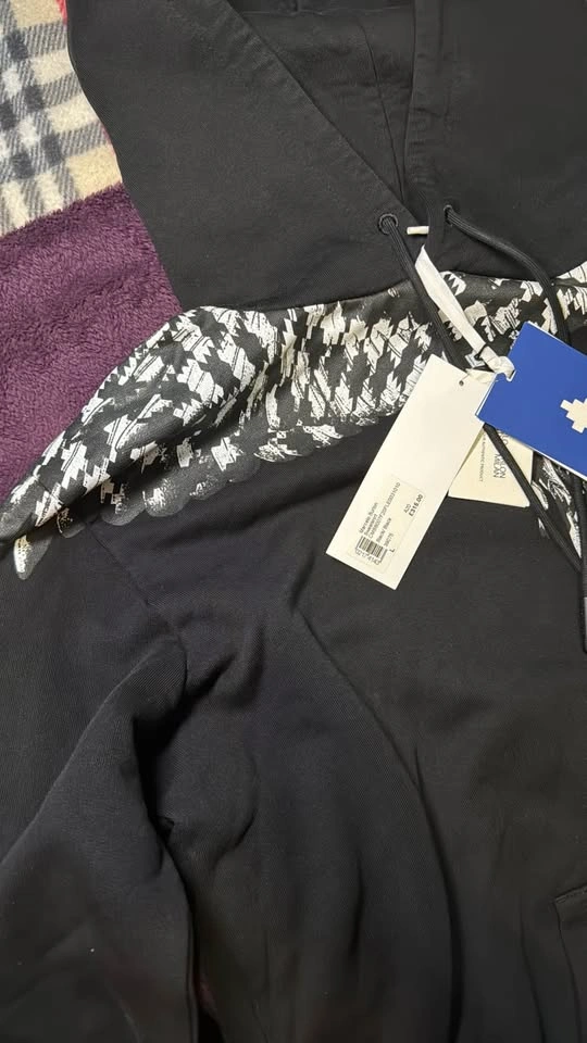 This is a new Marcelo Burlon Cross Pop Wings Hoodie in black, size large, complete with original tags. The hoodie features a striking wing graphic across the shoulders, adding a unique touch to your wardrobe.