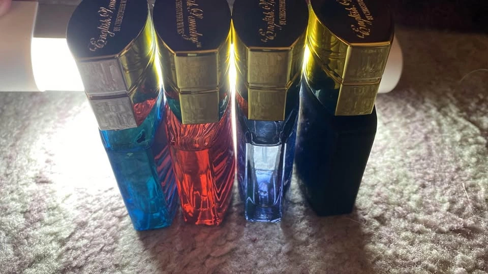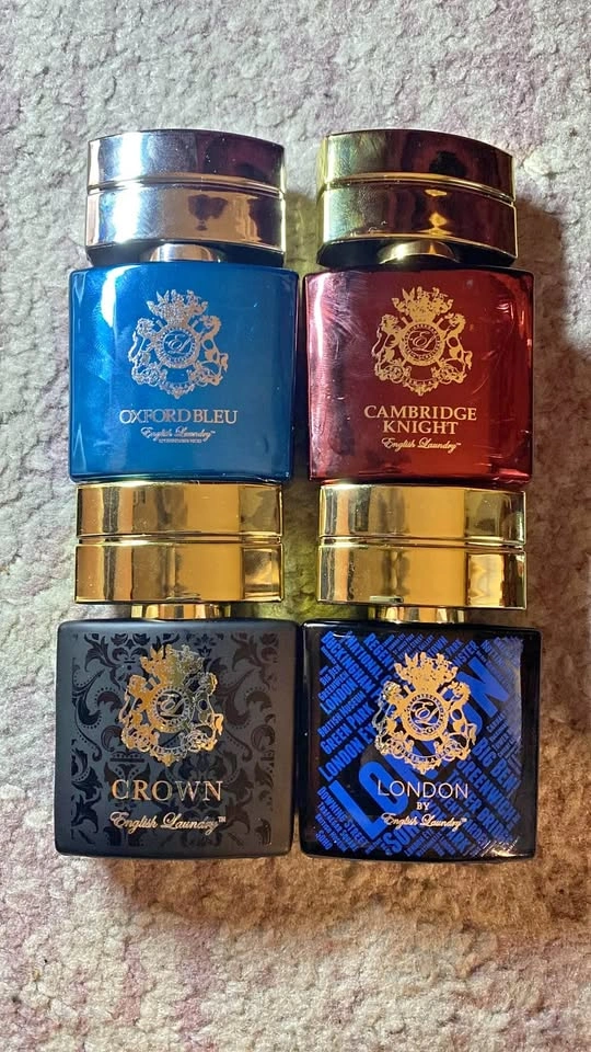 English Laundry 4 pack London, Cambridge Knight, Crown and Oxford Blue 20ml each (90% full). These are some of the most well liked English Laundry Scents which are considered very great inspirations. So grab yourself some easy to travel with bottles for on the go in some really good scents.