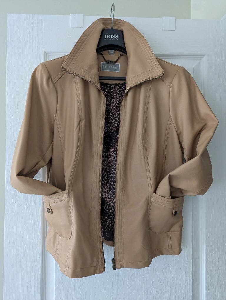 Here's a stylish and chic faux leather Jacket by GUILLAUME, a famous Canadian Designer.