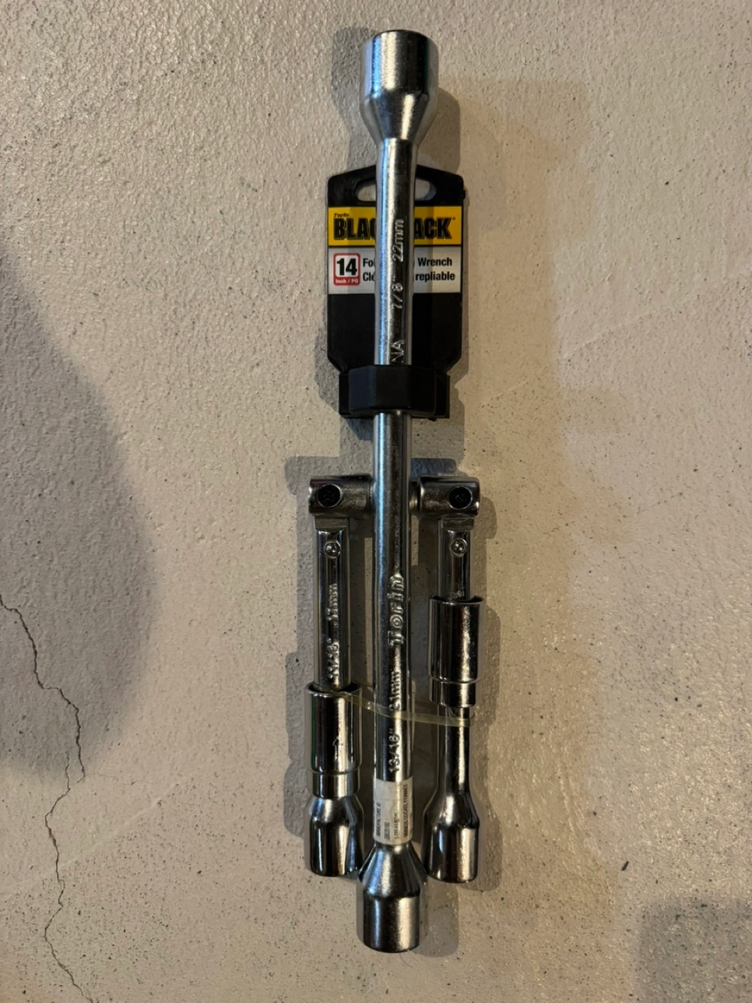 Selling a brand new Torin Black Jack Folding Lug Wrench! It's a 14 inch/PG folding lug wrench, with a 7/8" 22mm socket size. Perfect for your car's tire changing needs