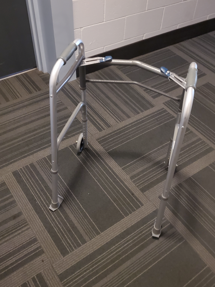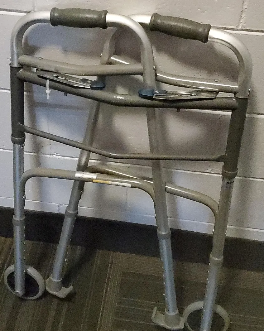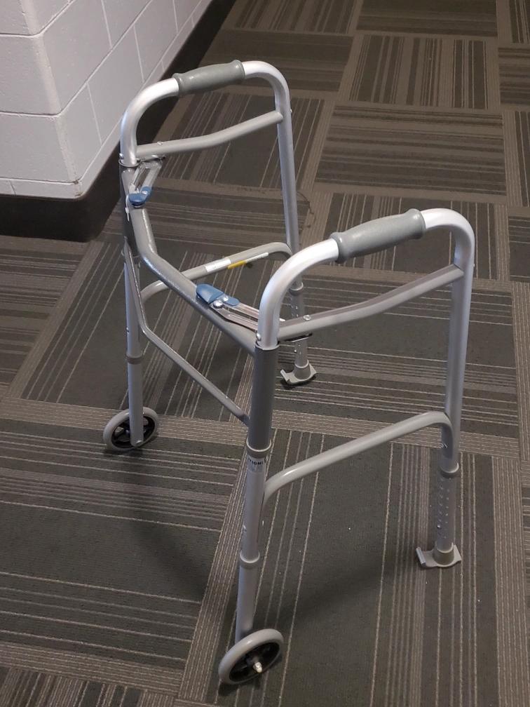 Selling a folding walker with wheels! It's in great condition and perfect for anyone needing a little extra support. It's lightweight and easy to fold up for storage or transport. Great for getting around!
